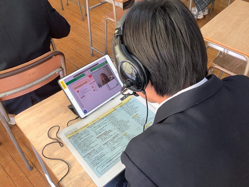 また、2年生はOST(オンラインスピーキングトレーニング)に挑戦していました。25分間、外国人講師とマンツーマンで会話をする体験はとても貴重です。粘り強く会話に取り組んでいました。
