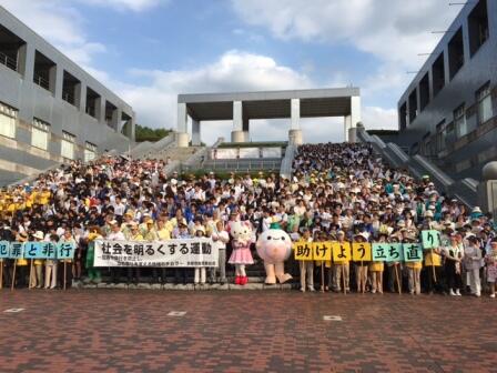 7月18日(月)15:30~17:00に多摩センターで「第66回社会を明るくする運動」啓発パレードが行われました。当日は気温の高い中、多摩美術大学美術館前広場からパルテノン多摩に向けて、多摩中の生徒57名と教職員7名の合計64名がパレードに参加しました。全体では、900名を超える人が参加し、啓発運動を盛り上げることができました。