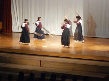 午後は吹奏楽部、JRC部、なぎなた部、国際交流団の報告、図書委員会のブックトークの発表がありました。練習の成果を存分に発揮し、会場を盛り上げました。