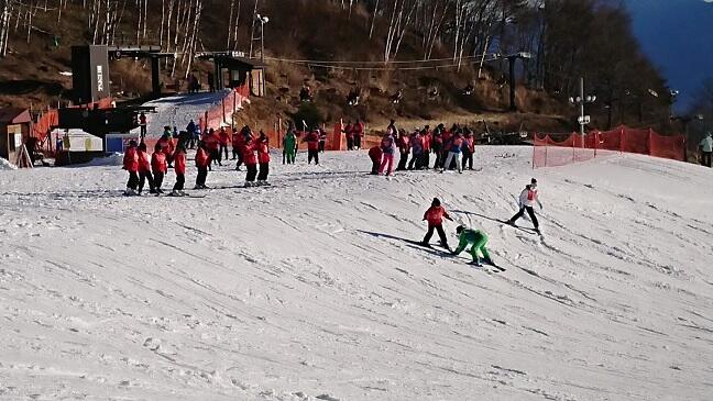 この時期にしてはとても暖かい日和の中、富士見高原スキー場でスキー実習を行いました。まぶしい日差しと真っ青な空のもと、インストラクターの先生の指導を受けて、汗を流しながら、熱心に練習に励みました。その甲斐あって、ほとんどの実習班が初日からリフトに乗り、斜面を滑ることができました。