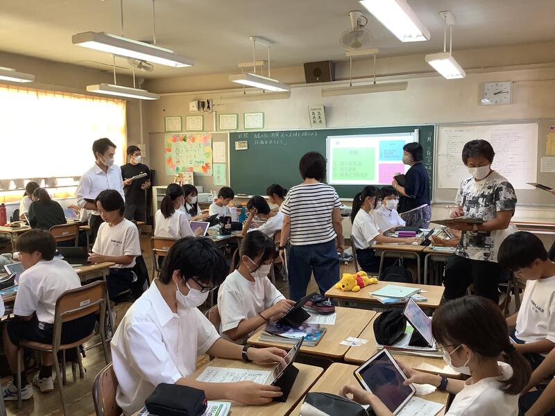 研究授業 投稿日時 : 2023/10/02 多摩中学校管理者 授業力向上に向けて、1年生の授業(英語•理科)で教員の研修会が行われました。今回の研修のテーマは、ICTの効果的な活用についてでした。2つの授業においては、生徒がタブレットを使って参加する活動が多く設定され、活発に個人活動や班活動が行われていました。 {{options.likeCount}} {{options.likeCount}}