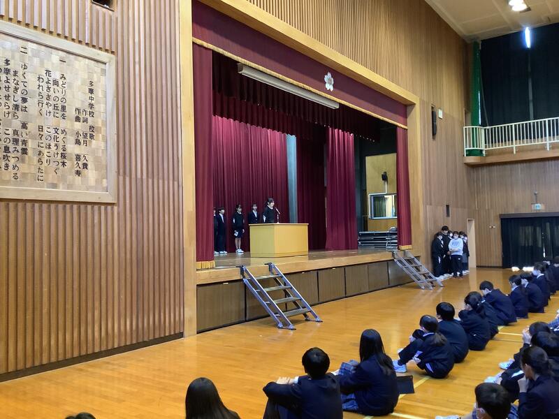11月28日① 生徒会朝礼 投稿日時 : 2023/11/28 多摩中学校管理者 生徒会朝礼では、17日に行われた一斉委員会における報告や呼びかけなどが各委員長から行われました。また、後半には、陸上部•なぎなた部•男女テニス部の表彰がありました。 {{options.likeCount}} {{options.likeCount}}