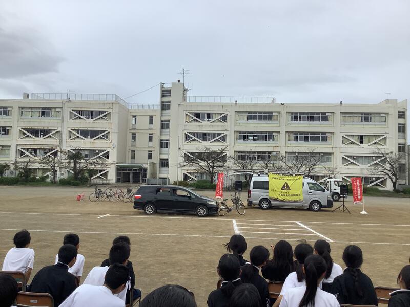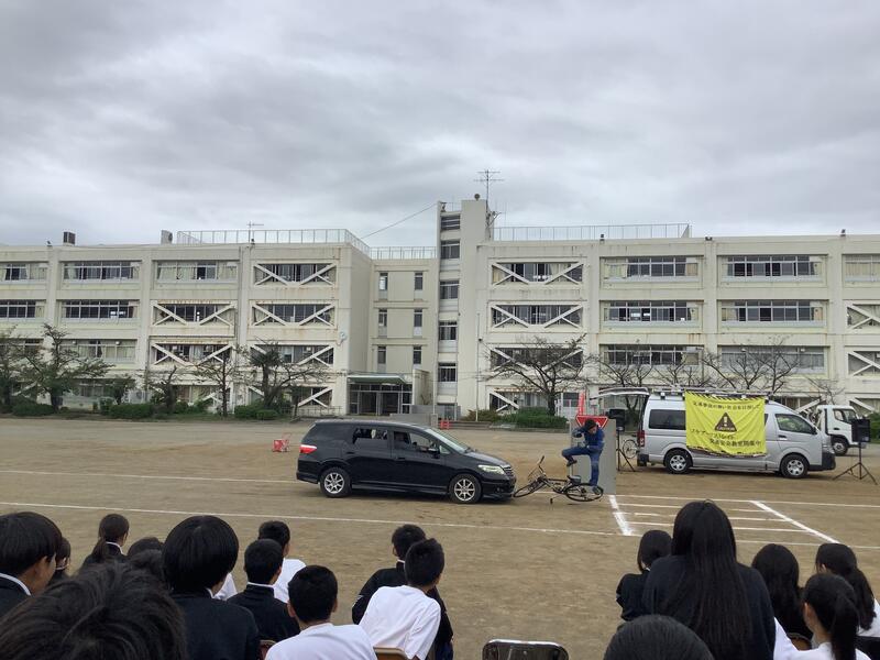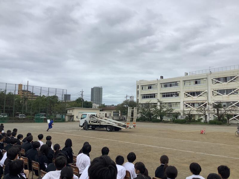 また、午後からは「スケアードストレイト」(擬似体験型交通安全教室)が行われました。株式会社ワーサルの皆様の実演や多摩中央警察署の皆様のご講演により、特に自転車事故の防止に向けて大切なことをわかりやすくお話しいただきました。自転車事故の被害者にも加害者にもならないために、日頃からルールを守るとともに、安全に対する意識を高くもつことの大切さを改めて学びました。