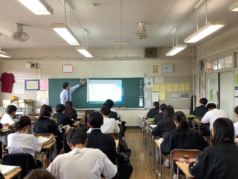 さて、3年生の理科の授業では、前回の実験の結果を踏まえた考察をする学習が行われていました。具体的には中和の実験による酸とアルカリの反応について、イオンのモデル図を用いて説明する取組が行われました。グループ協議で考えを深め、わかりやすくまとめていく様子が見られました。