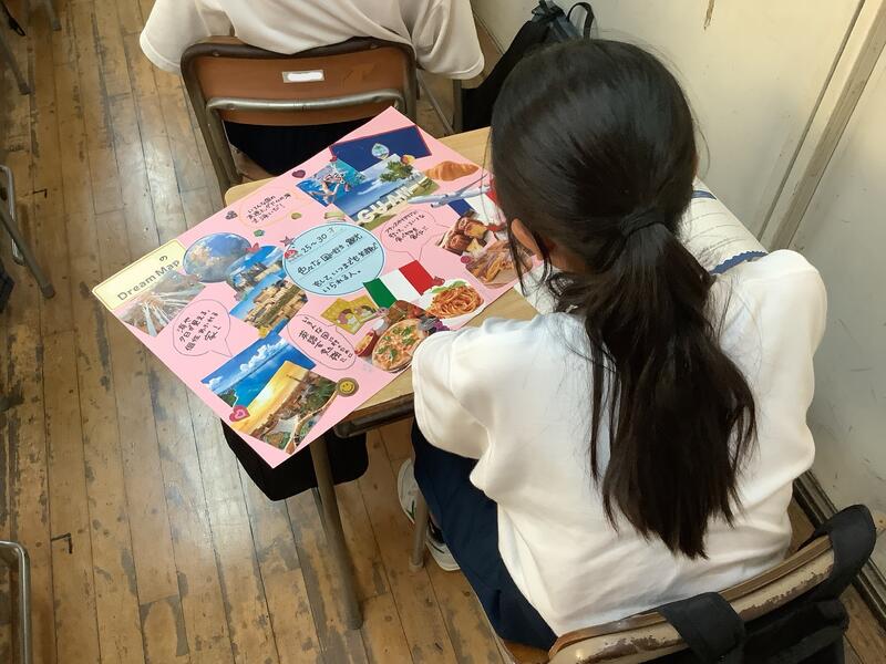1年生は、自らの興味や関心を踏まえて将来について考える「ドリームマップ」作りを行いました。講師の皆様の支援や助言に基づき、自らの夢について形に表し、全員が発表まで行いました。とても立派に発表ができたと講師の皆様からお褒めの言葉もいただきました。