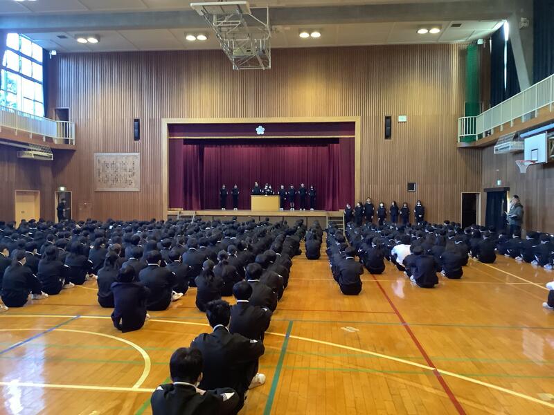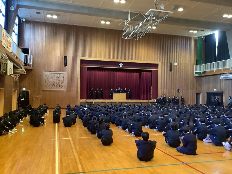 今朝は今学期最後の生徒会朝礼が行われました。各委員会の委員長からは、活動報告とともに、いま課題となっていることや改善に向けて取り組んでもらいたいことなどについての話がありました。