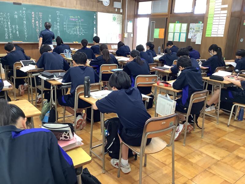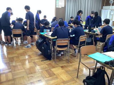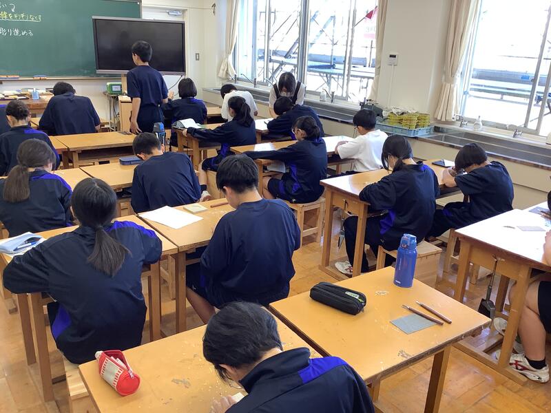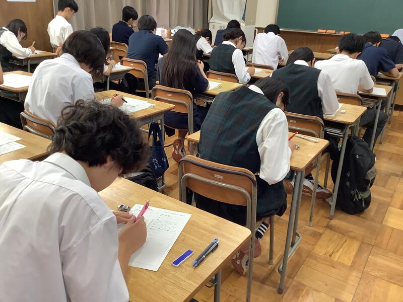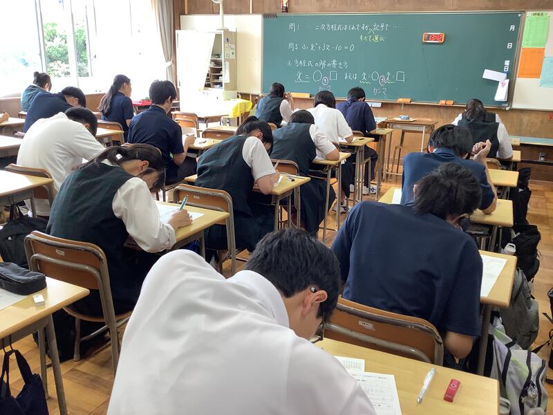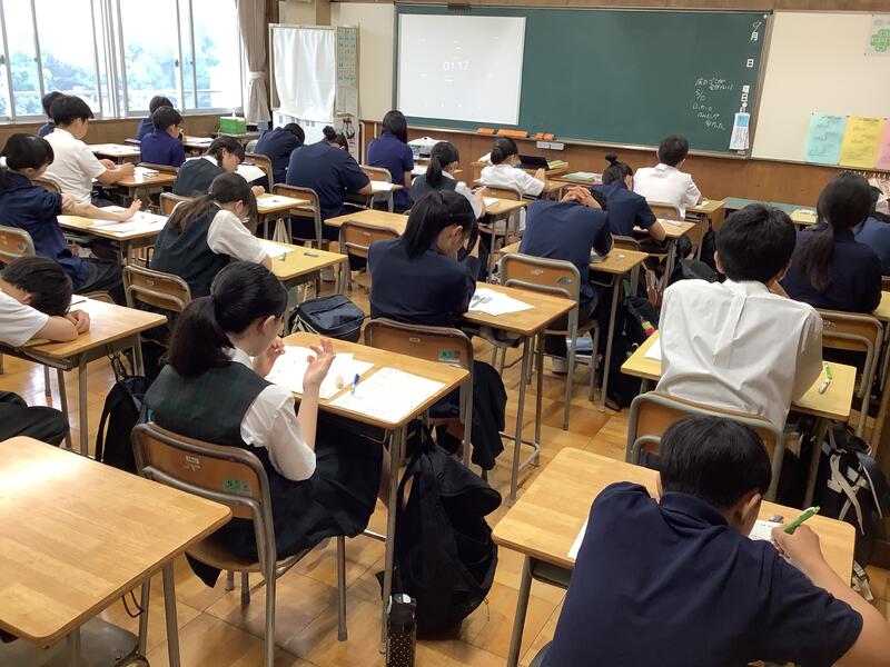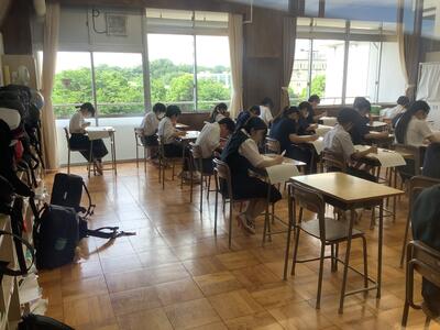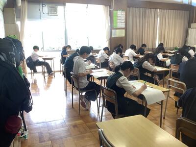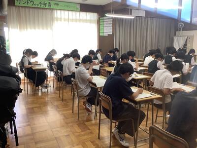 今日は晴れて、また気温の高い1日でした。全校で領域別確認テストを実施しました。定期考査での集中を継続して5教科のテストに臨みました。