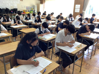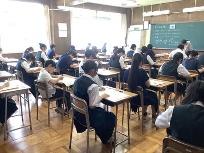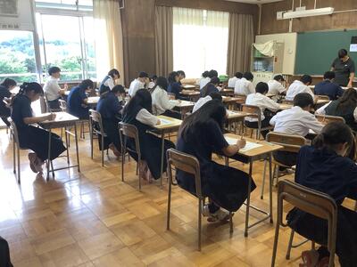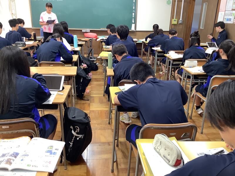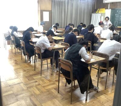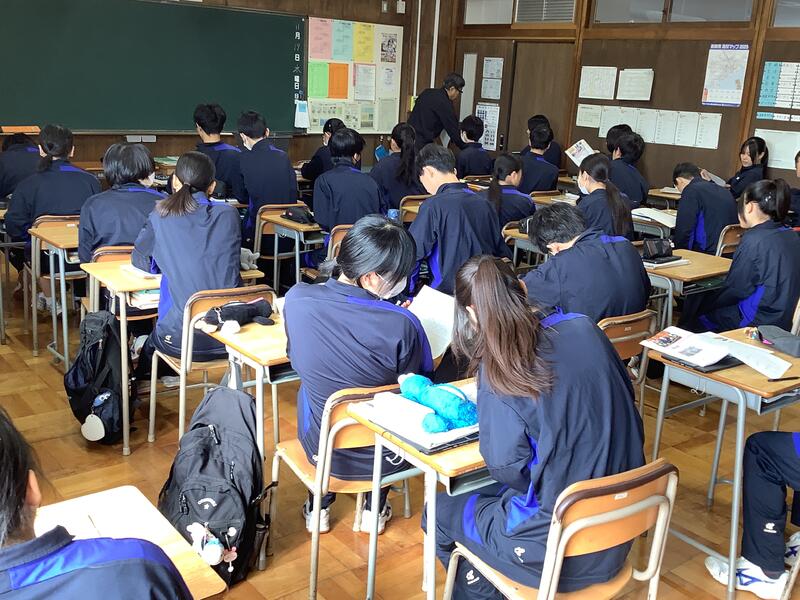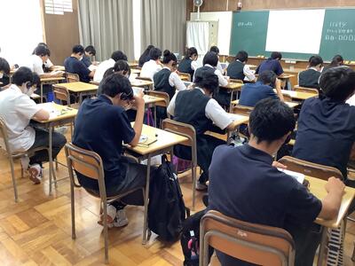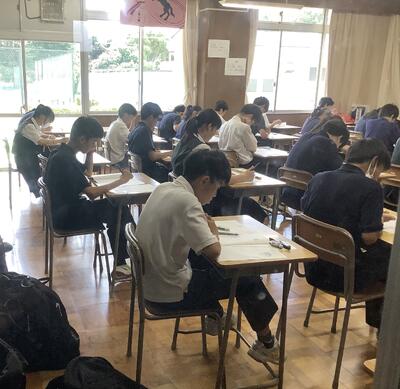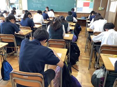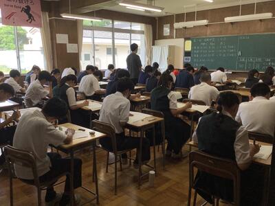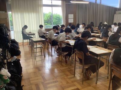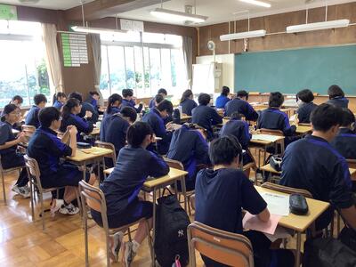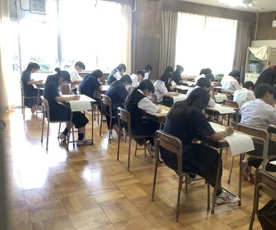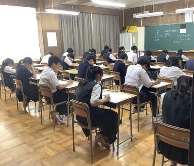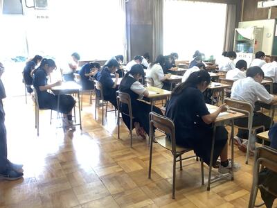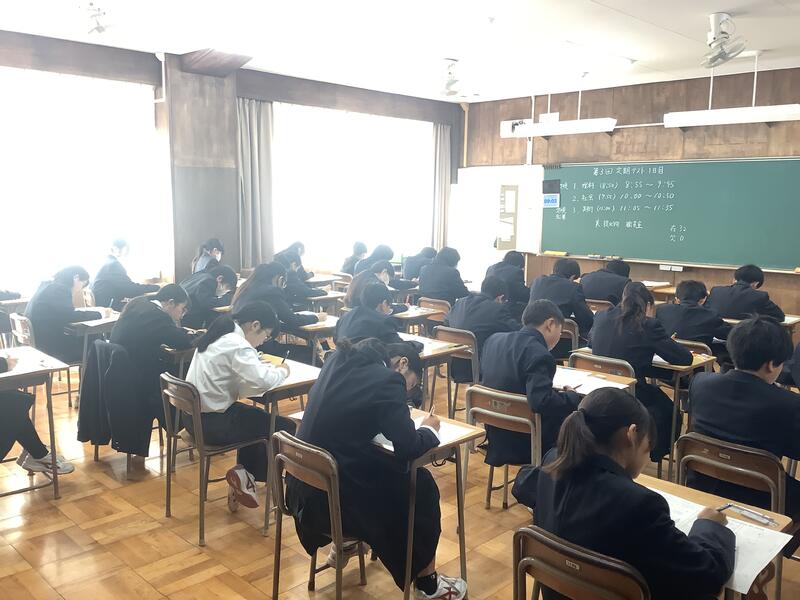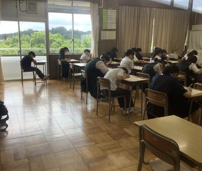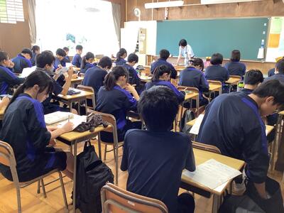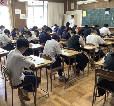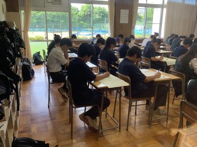 第1回定期考査の最終日です。生徒は、引き続き真剣に取り組んでいました。9教科(8教科)と教科数もありましたが、それぞれ準備をして臨んだ三日間が終了しました。当日に向けての取り組み、普段の授業の取り組みなど振り返って今後につなげていきましょう。