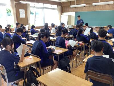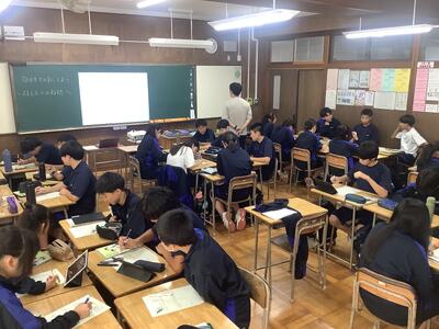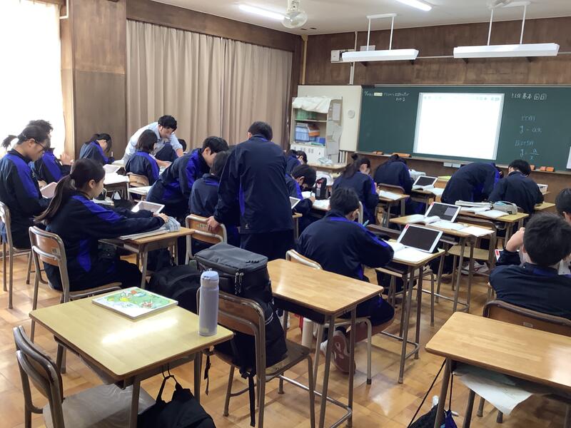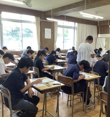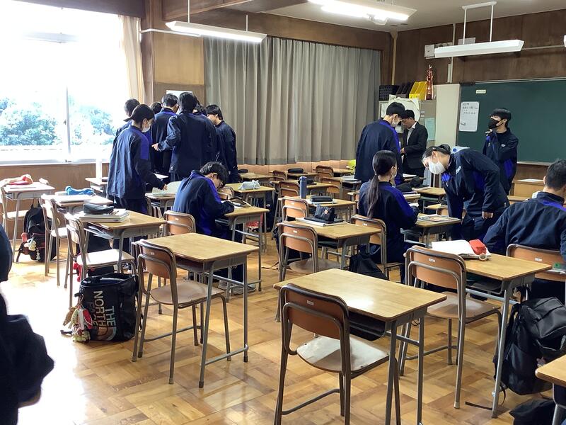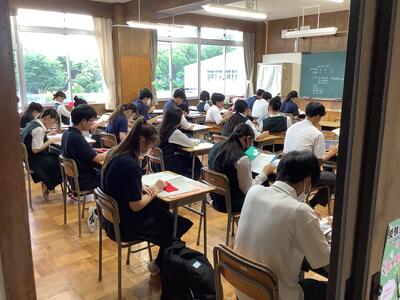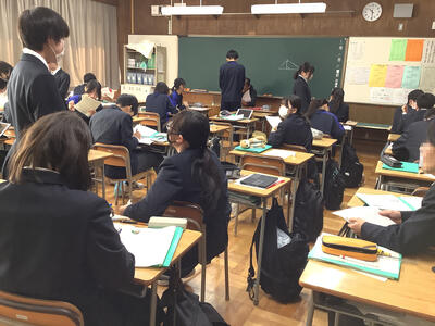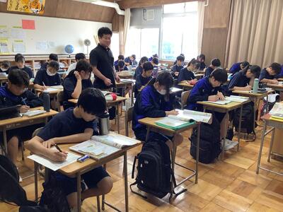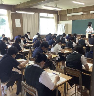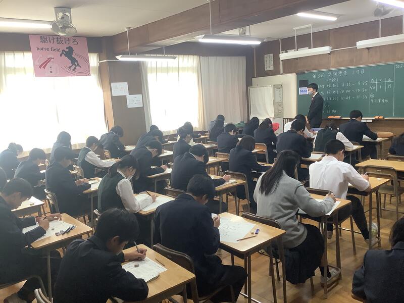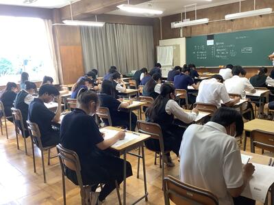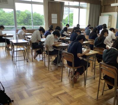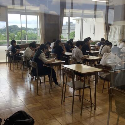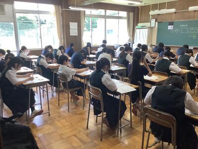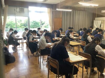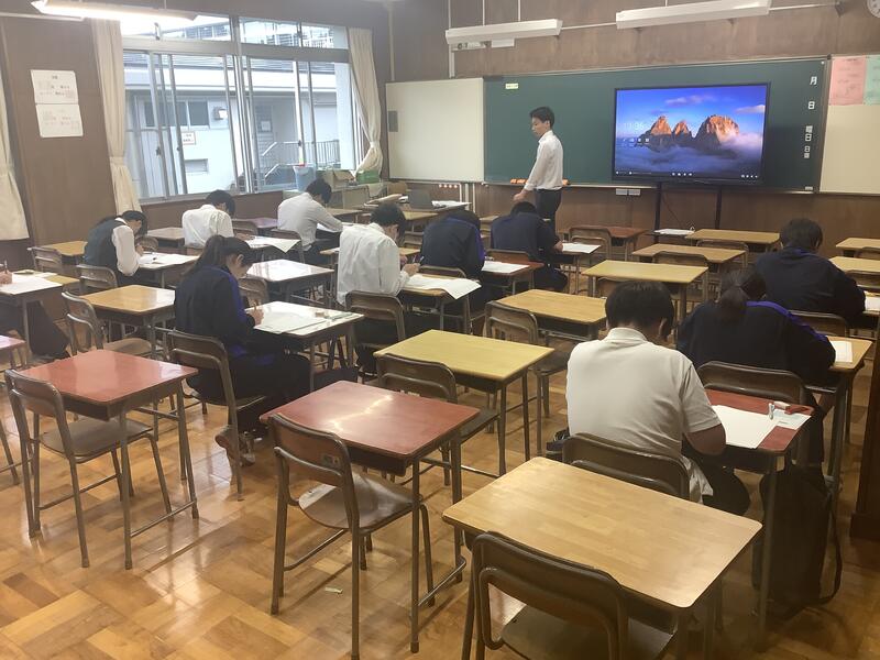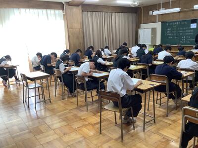 第1回定期考査の最終日です。生徒は、引き続き真剣に取り組んでいました。9教科(8教科)と教科数もありましたが、それぞれ準備をして臨んだ三日間が終了しました。当日に向けての取り組み、普段の授業の取り組みなど振り返って今後につなげていきましょう。