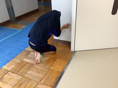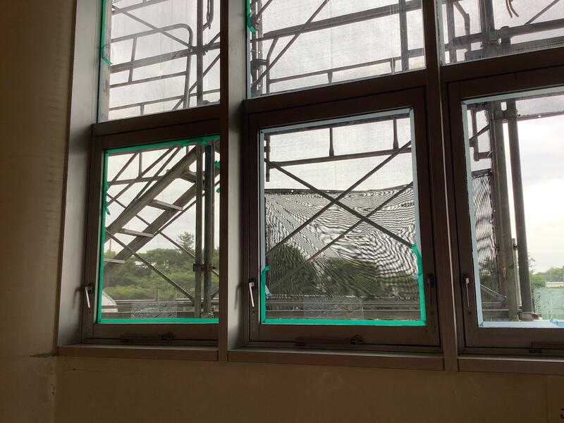 工事も少しずつ始まっています。古くなった窓枠の補修を行なってもらっています。天気が悪い日も、暑い日も外で作業を進めてくださっています。