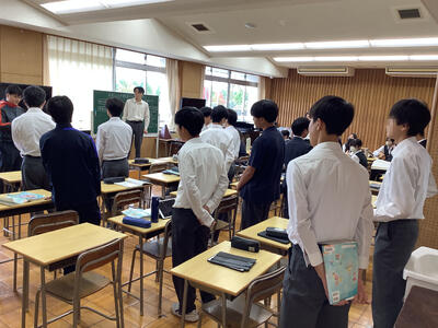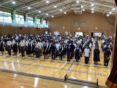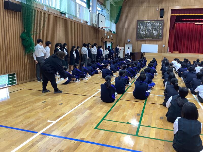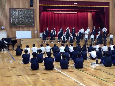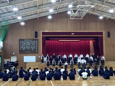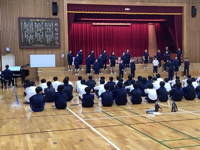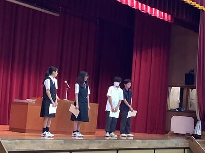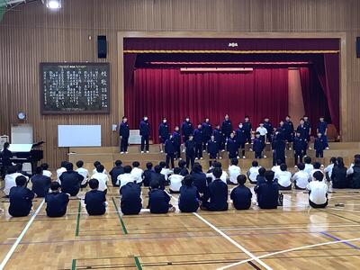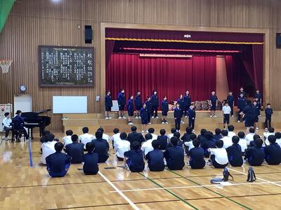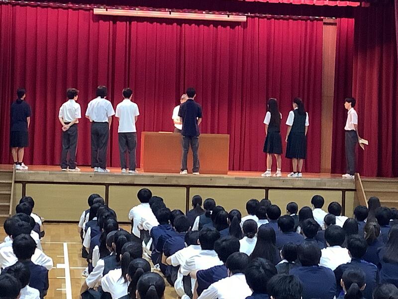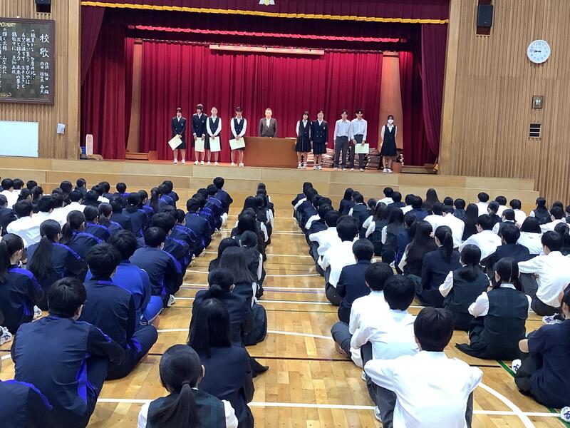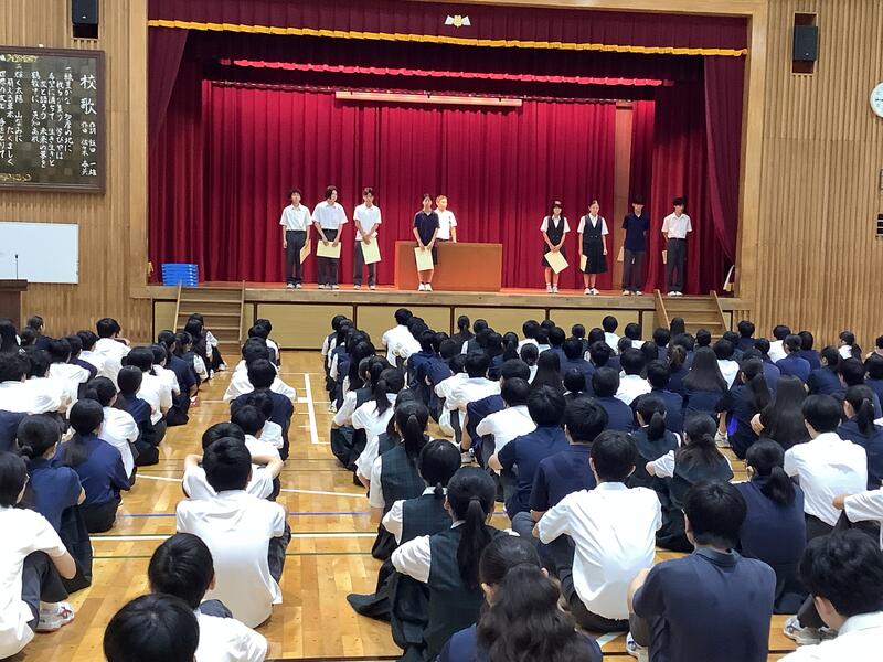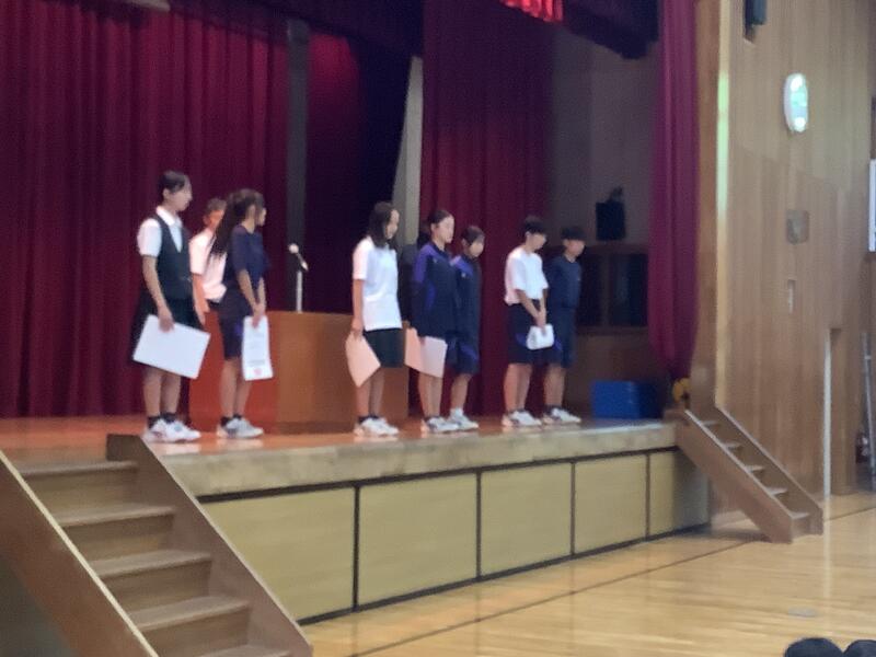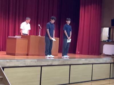 生徒会朝礼後は、部活動の表彰を行いました。時間の都合で今日は一つの部活のみ表彰を行いました。次回の朝礼でも表彰を行います。