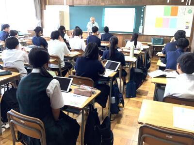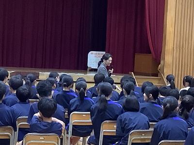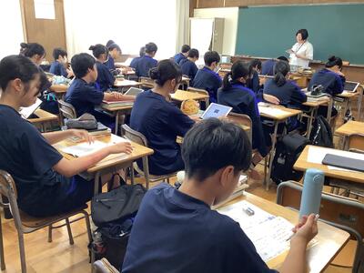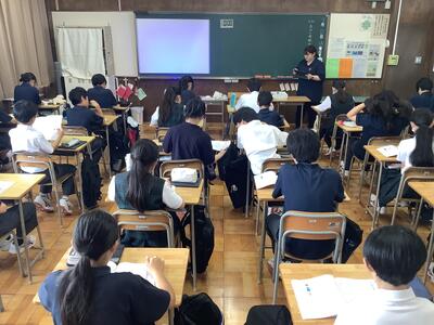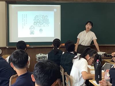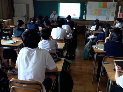 2年生は、6校時に保護司会から講師の先生をお招きして、「社会を明るくする運動」の講演会を行いました。講師の先生から、この運動の目的や保護司としての経験などを質問を織り交ぜながら、お話をしていただきました。