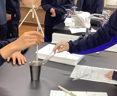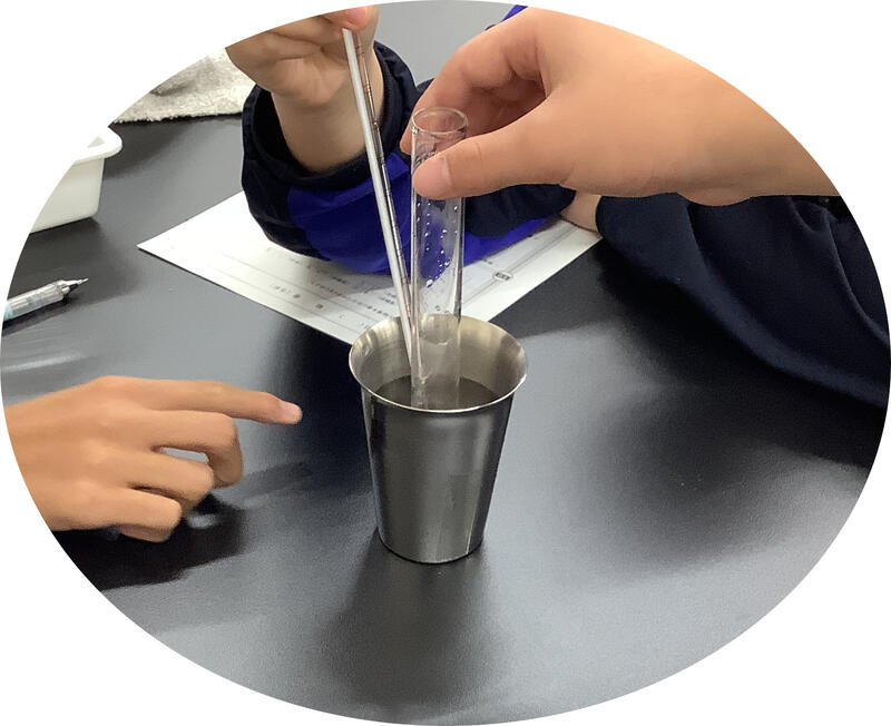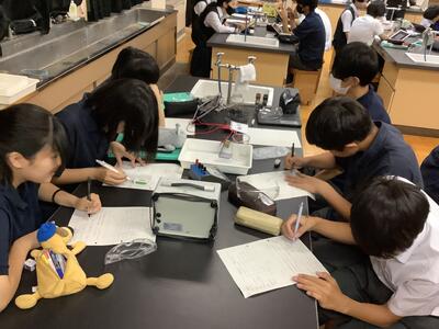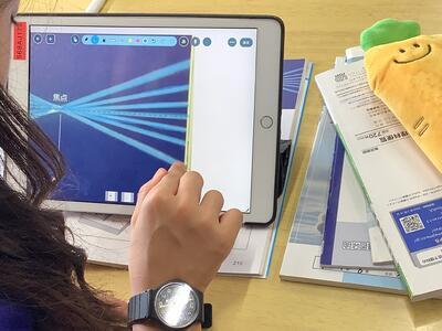 3年生の理科では、高さは同じですが、異なる角度・距離の斜面から物体を滑らせたときに、通過する速さが同じになる理由を班ごとに考え、共有していました。これまでの学習で身に付けた力を活用して整理していました。