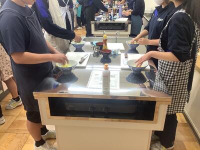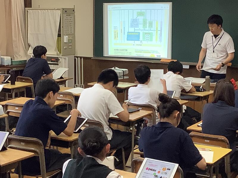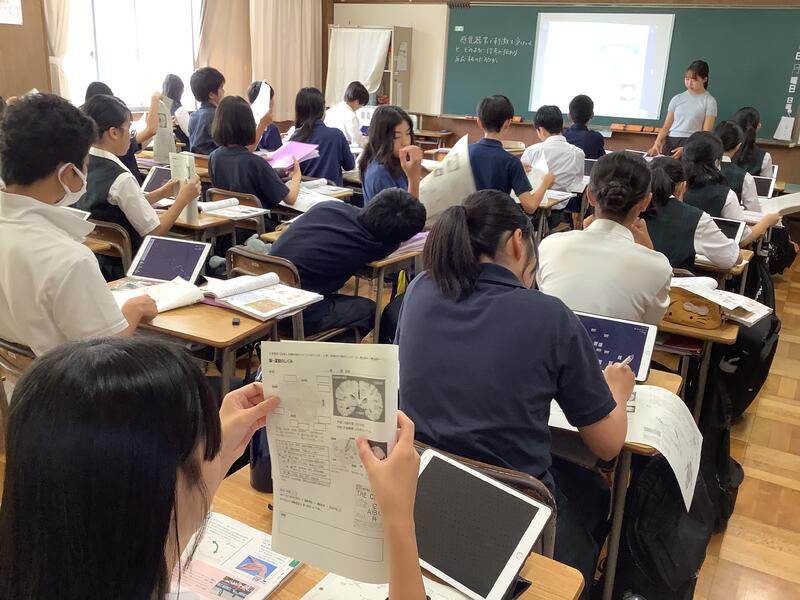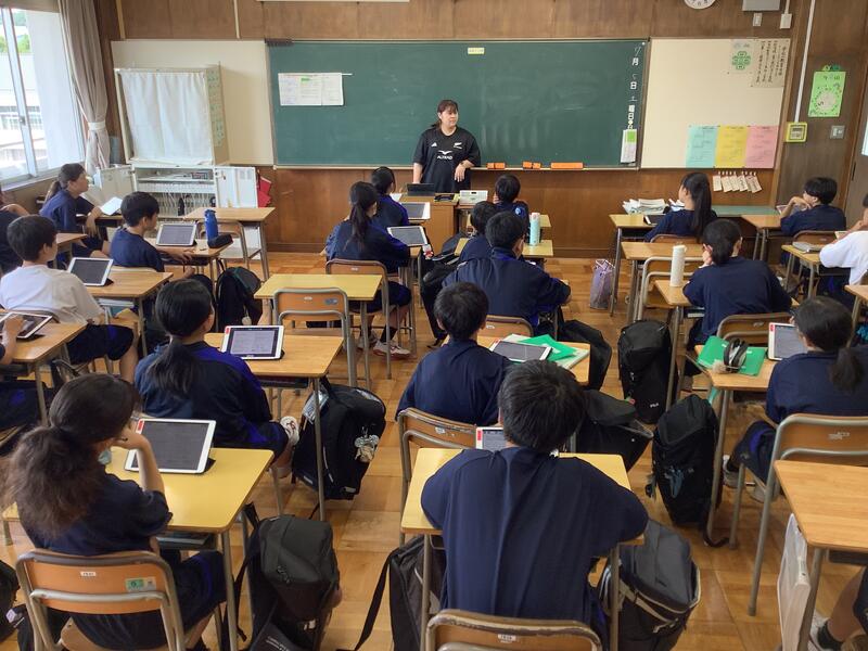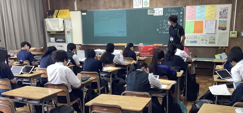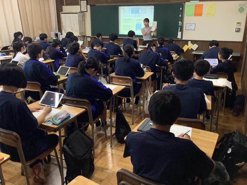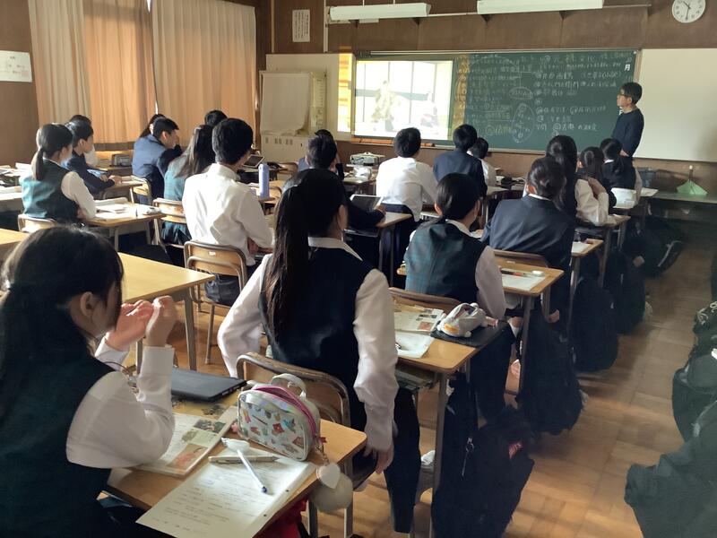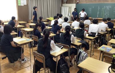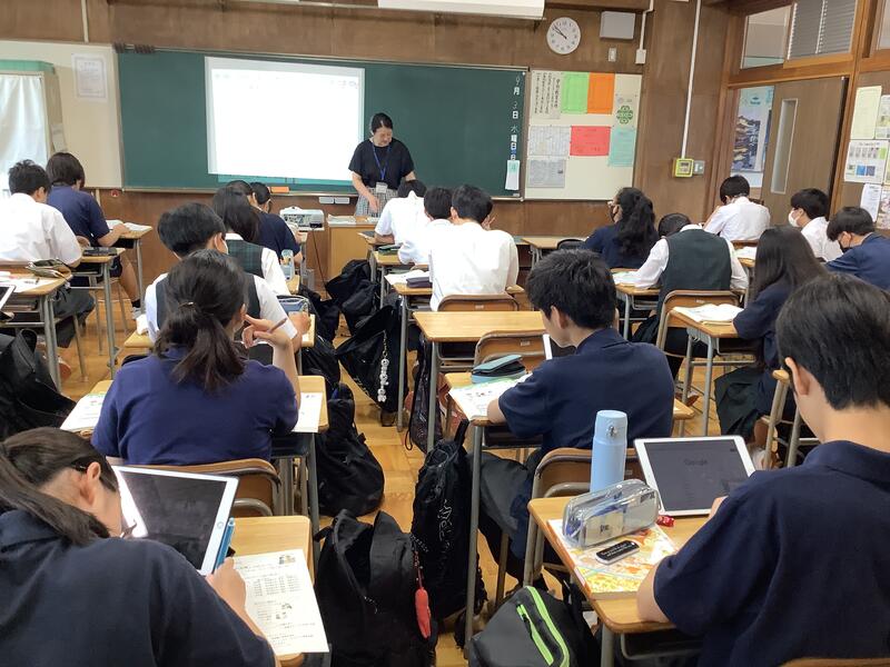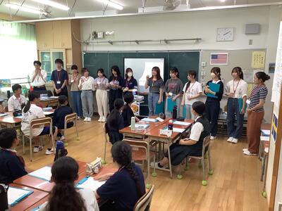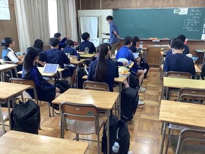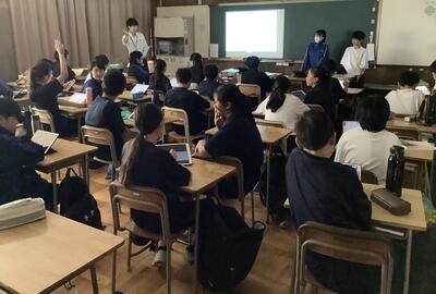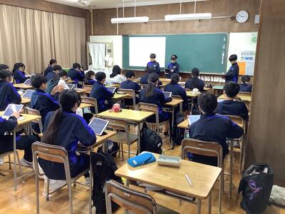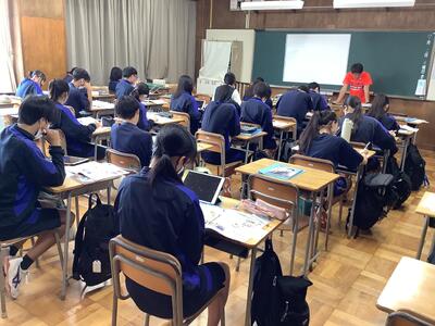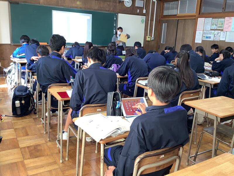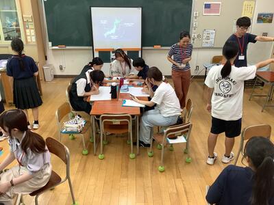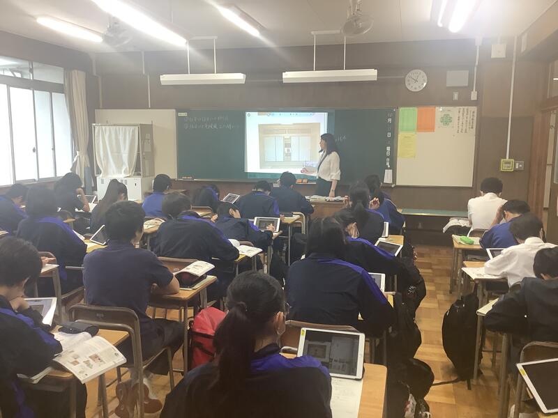 途中、日本語を使用する場面も入れながら、留学生の日本語のサポートをするなど、双方向で学習に取り組みました。