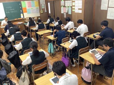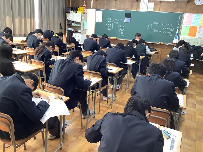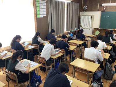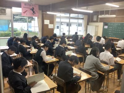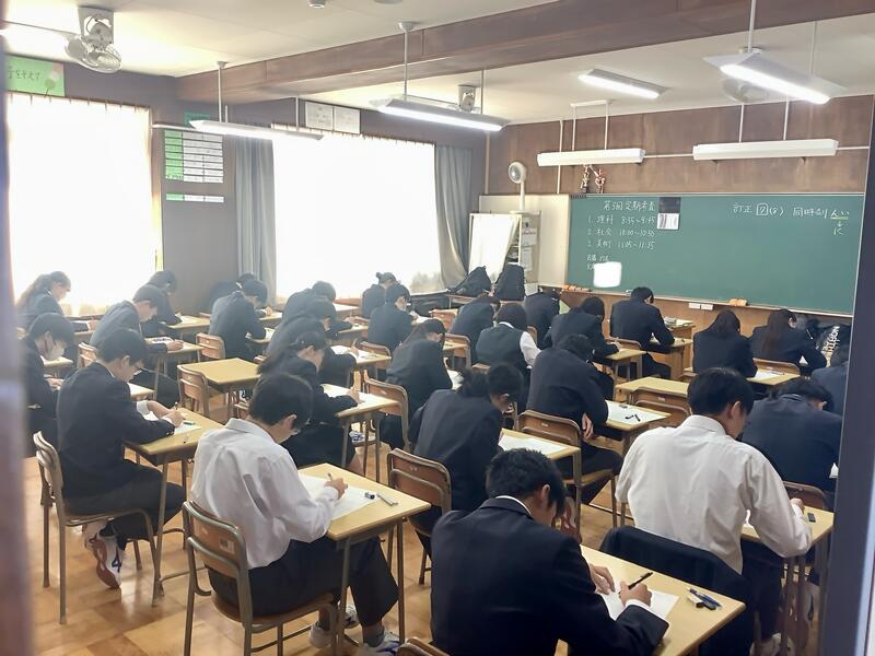 本日から第一回定期考査になります。1校時の教科が始まりました。真剣に問題に向き合っています。