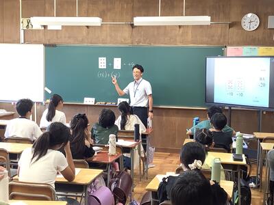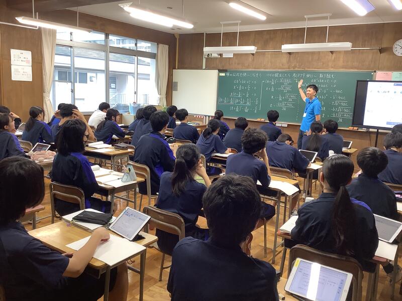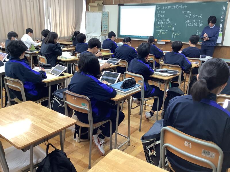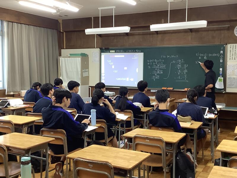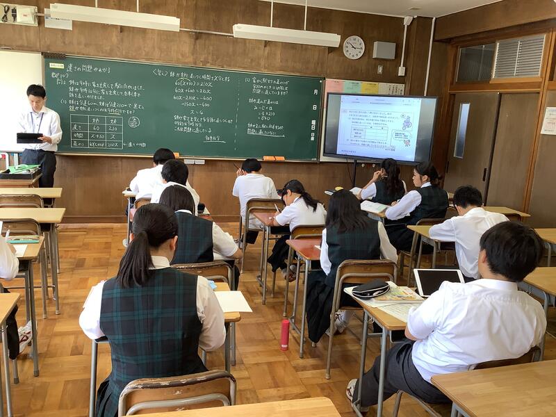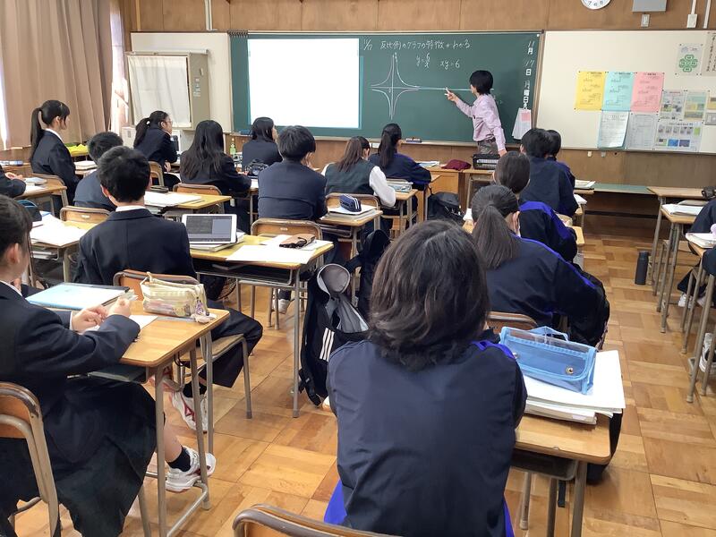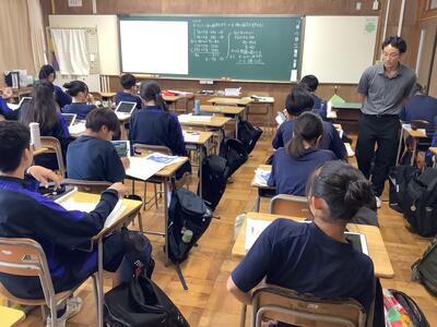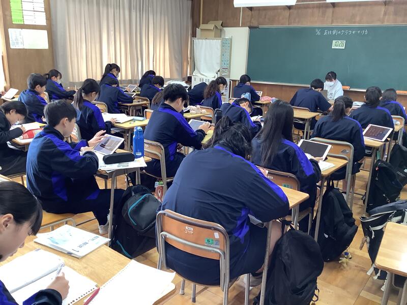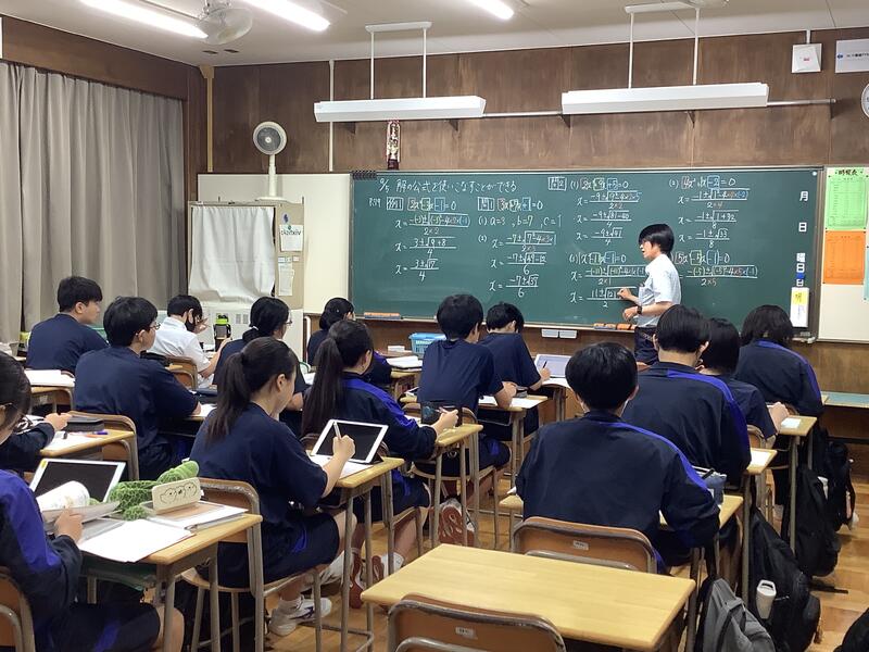 2年生の数学では、連立方程式を利用した問題に取り組んでいました。式の立て方、計算の手順などを確認しながら進めていました。