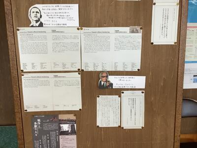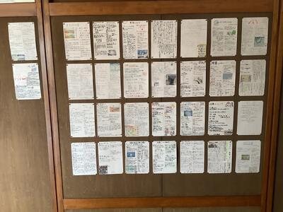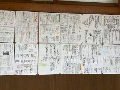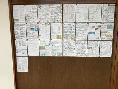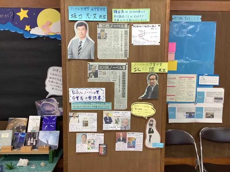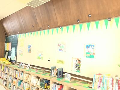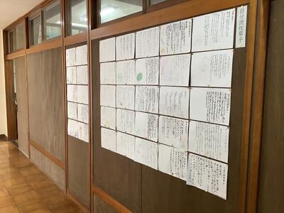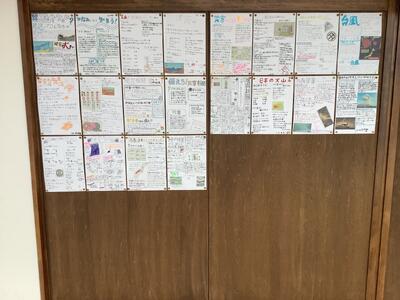 ⭐️図書室前の廊下の白板と黒板に書いてあるものと貼ってあるものです。