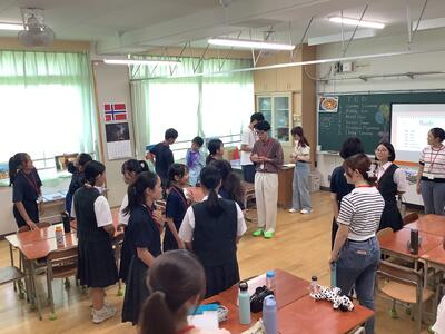 午後は、第2回のTTGGを実施しました。今日は、8名の留学生がゲストティーチャーとして来てくれました。先週使った表現も活用しながら、英語での会話に挑戦しました。