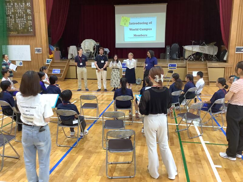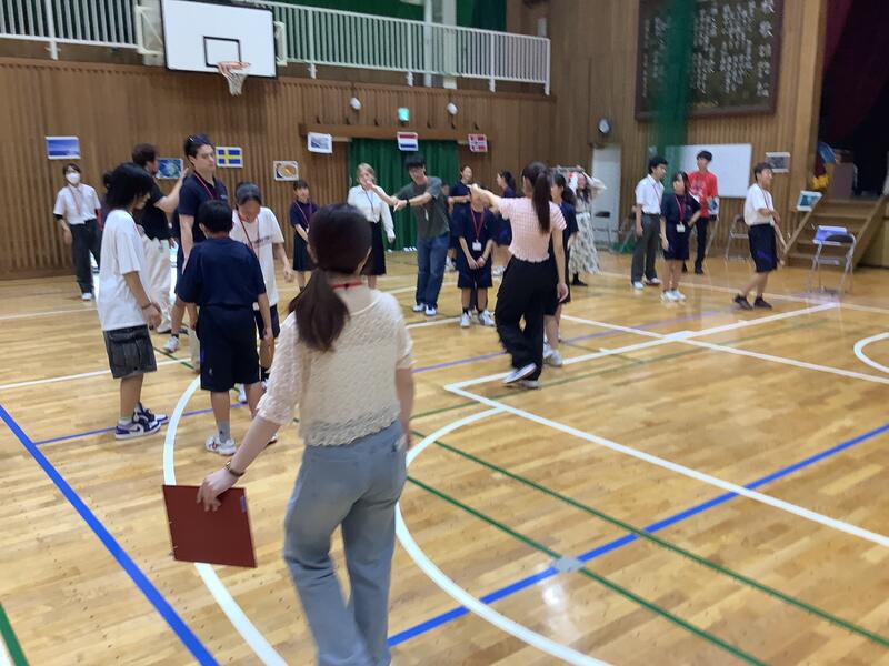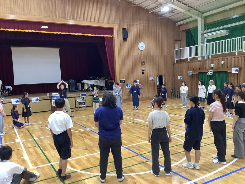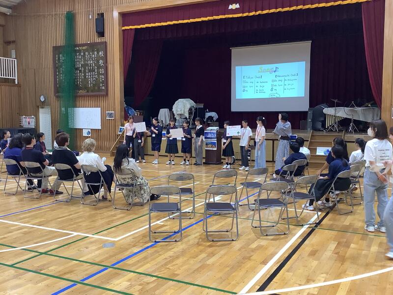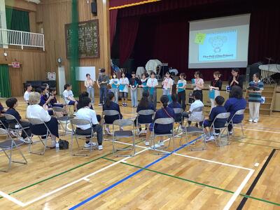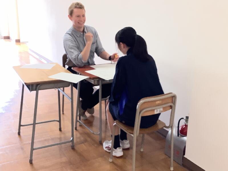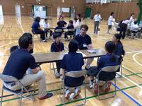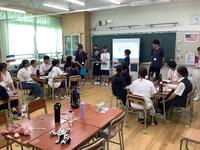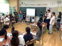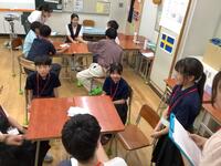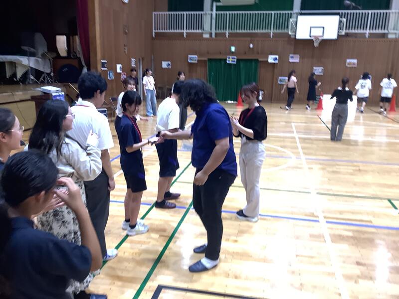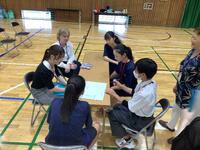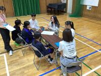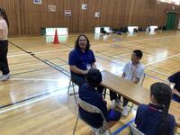 五つのグループに分かれて時間で区切って進めました。それぞれのグループにもサポートしてくださる先生に付いていただき、相手への質問や自分のことを紹介する表現の練習もしました。