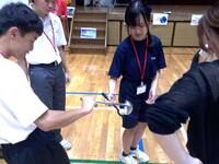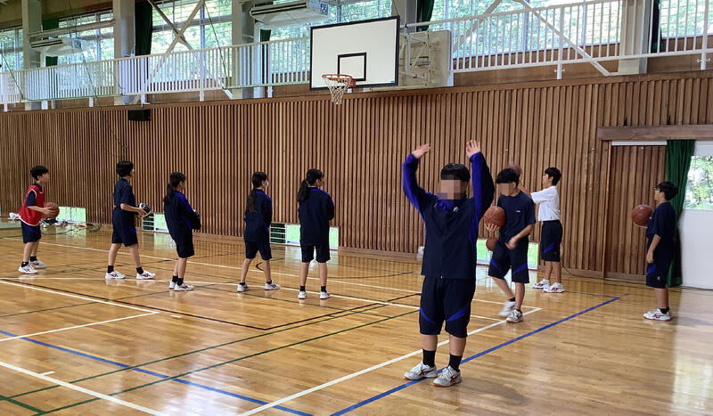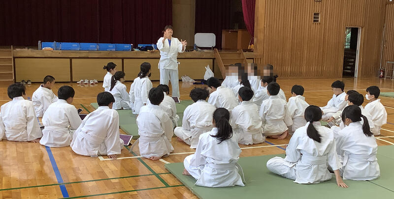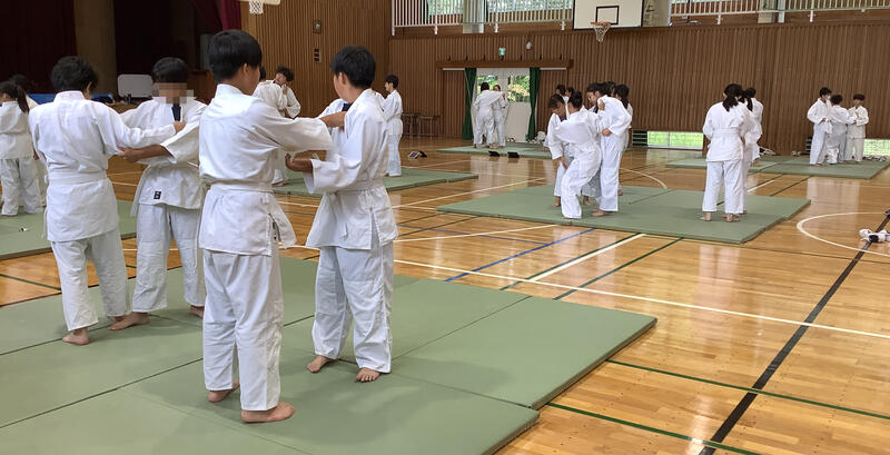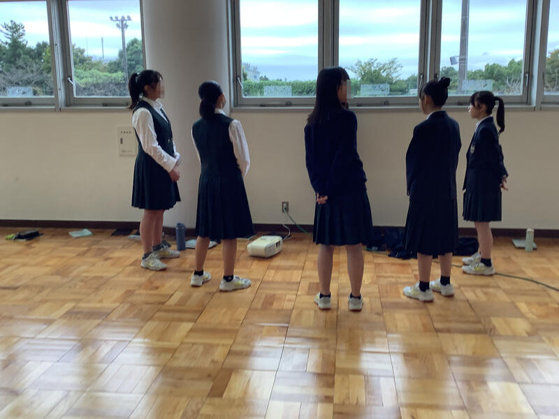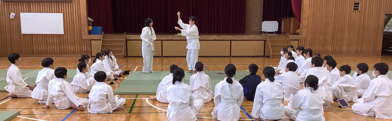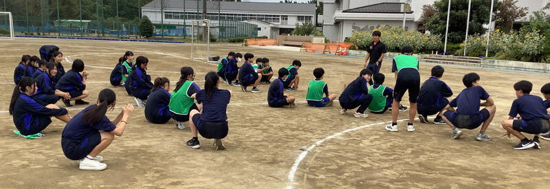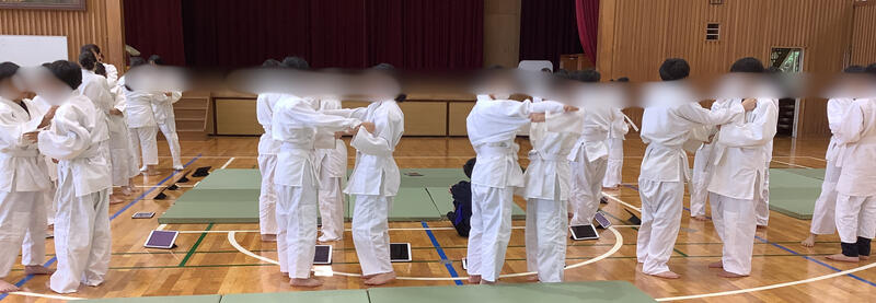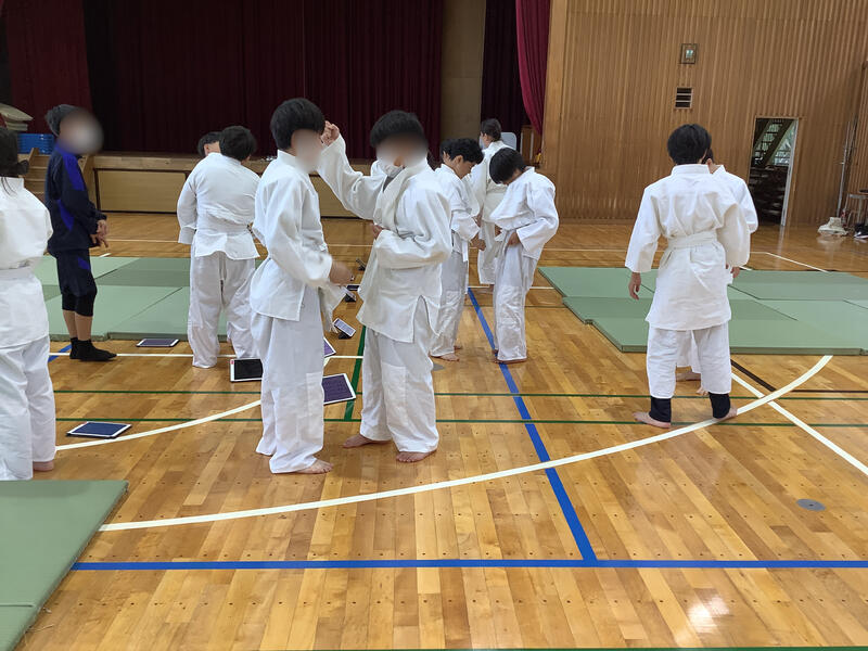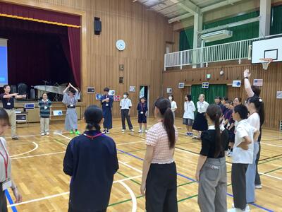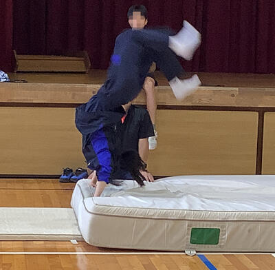 演技構成を考える場面では、必ず入れる技の種類を確認し、その後、実際に実習生の先生の見本演技を見ました。自然と拍手が起きていました。