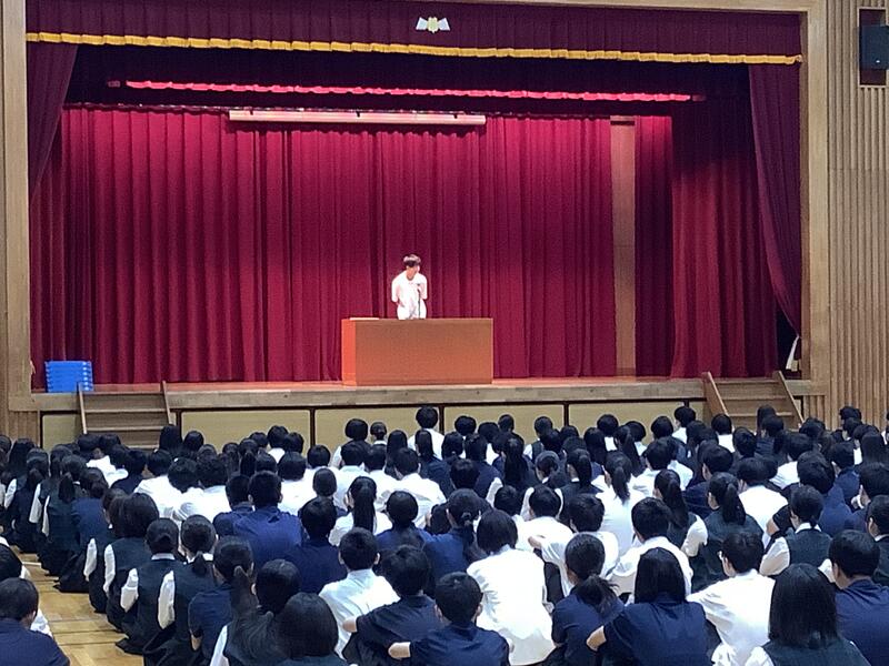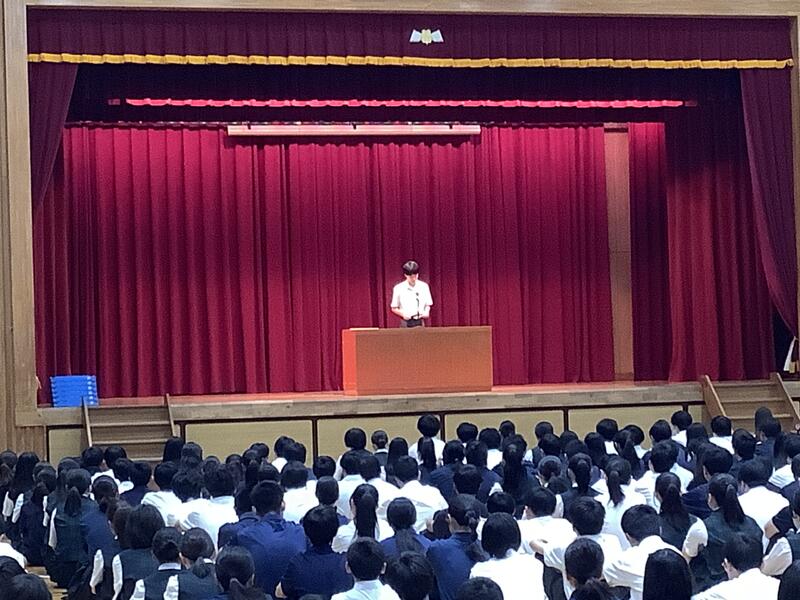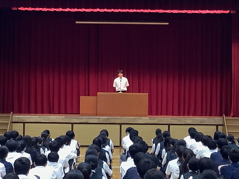 体育祭実行委員長から、アンケート協力へのお礼や、体育祭の振り返り、音楽祭に向けての話がありました。
