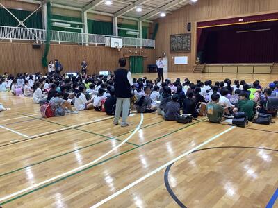 次に、表彰を行いました。最後に、健全育成主任から8時25分登校、昇降口の扉について話がありました。