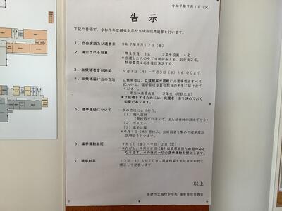 その後は、選挙管理委員長から生徒会役員選挙について(立候補受付期間等)説明がありました。