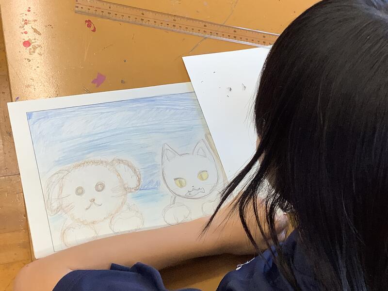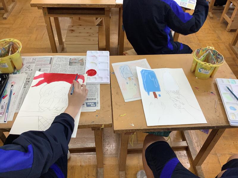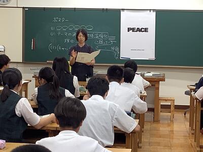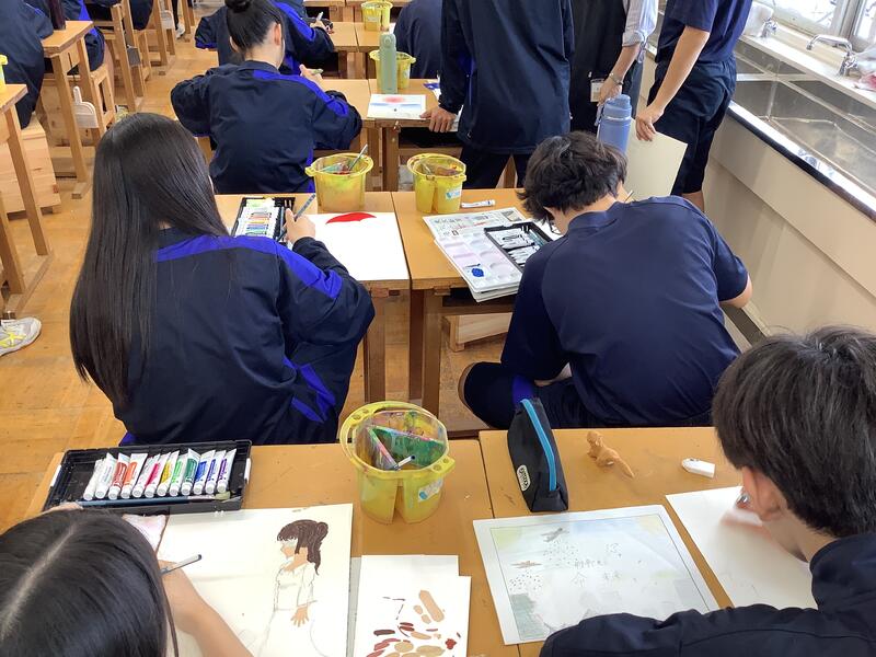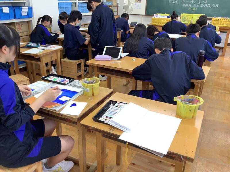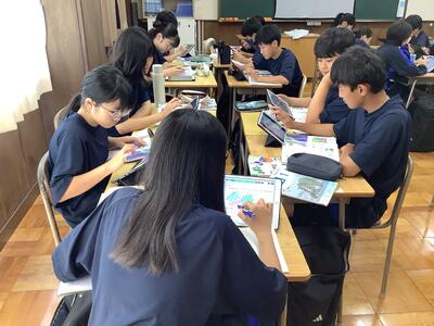 2年生の美術です。ポスター作りをしていますが、そろそろ終わりに近づいて来ています。