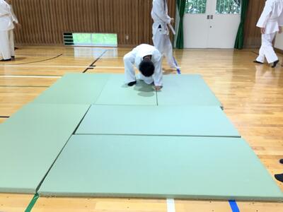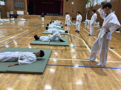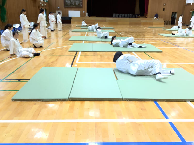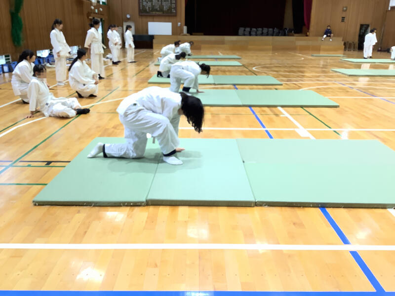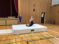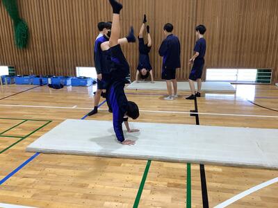 自分たちでもどのような演技構成にするかを考え、 作った演技構成の順に技の練習をしました。