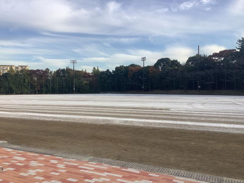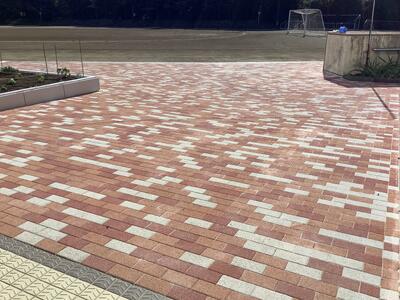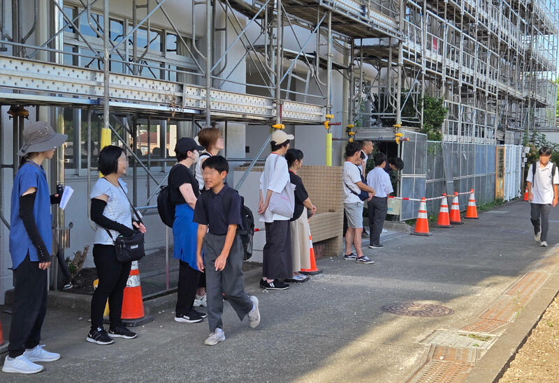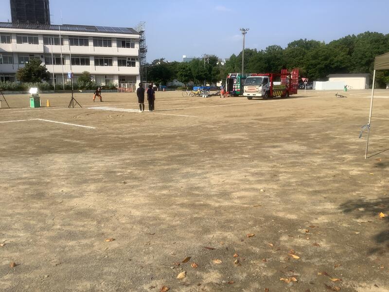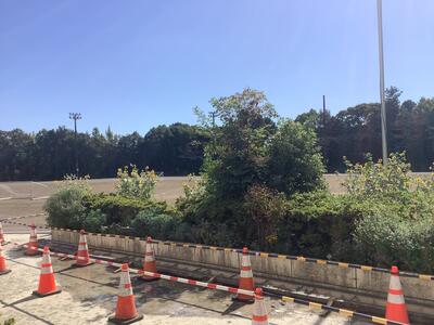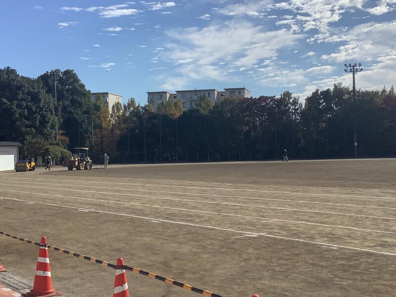 校庭の隅には、簡易の歩行者用通路を準備するなどして、作業時に危なくないよう、実際に作業する所から距離を取っています。