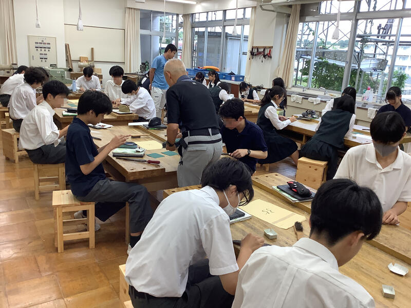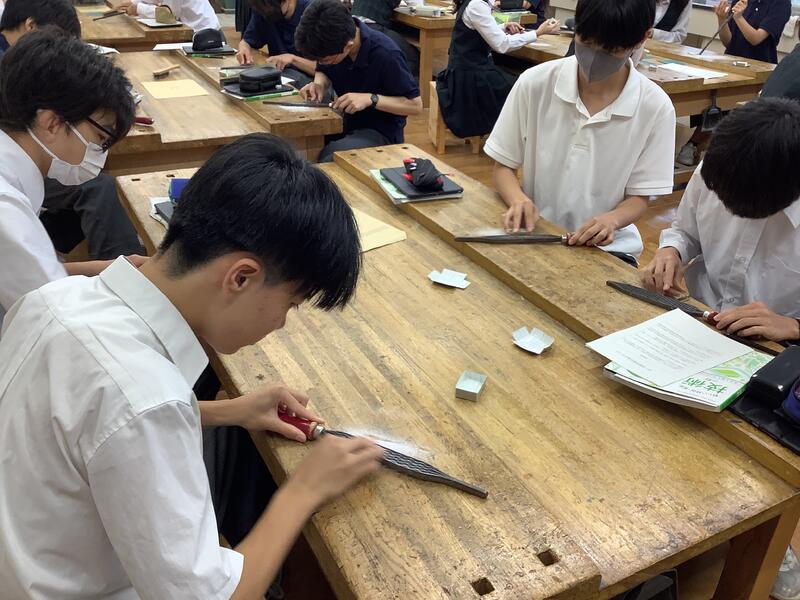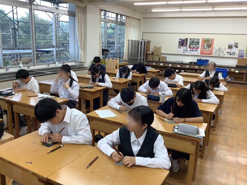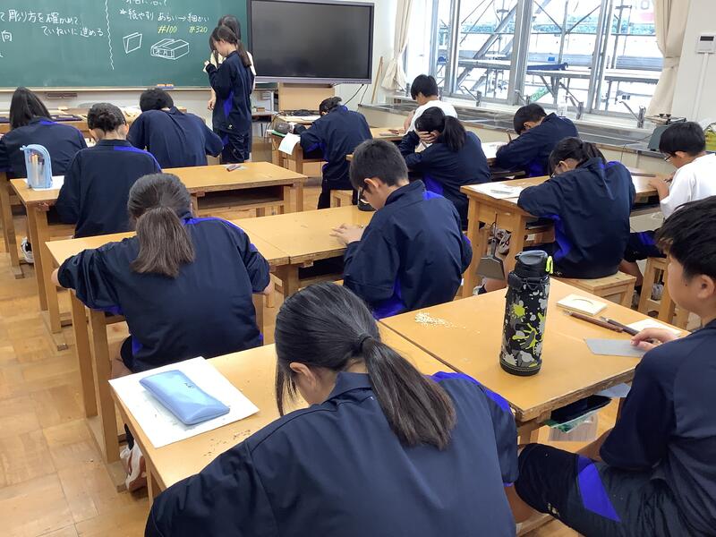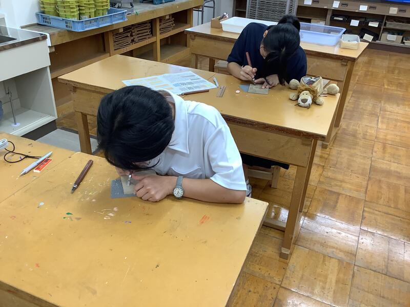 ・1年生の美術で、木彫コースターの作成をしています。そろそろ完成に近づいています。
