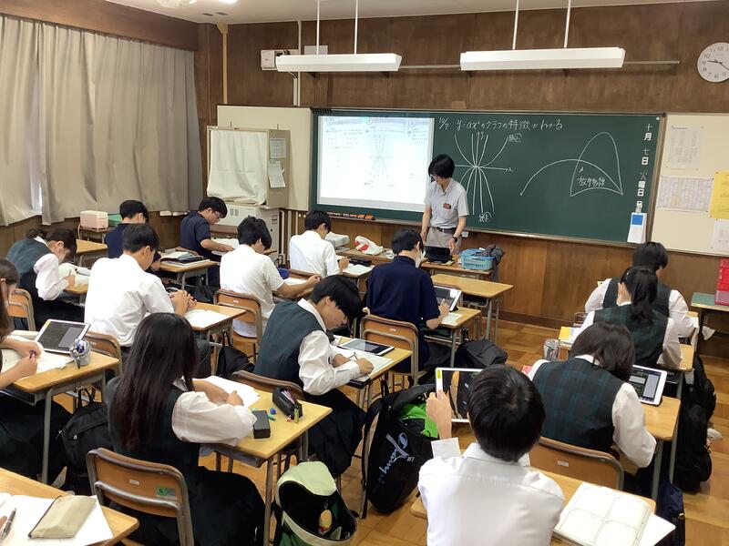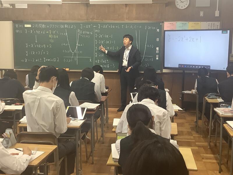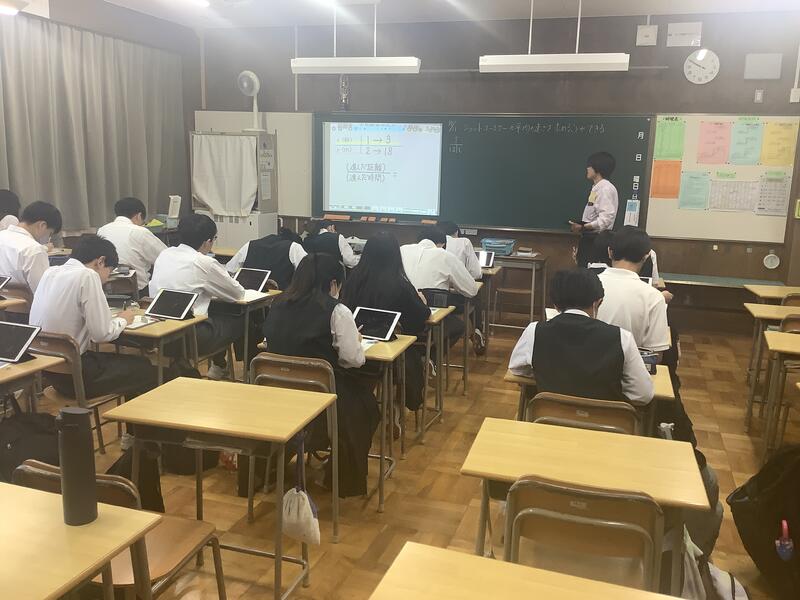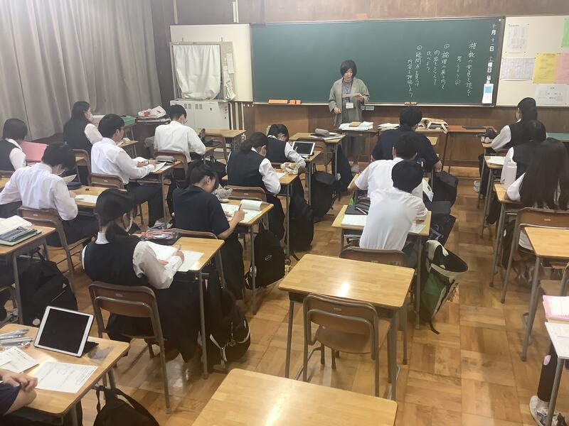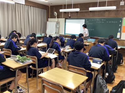 1年生の数学では、文字式の学習を行なっていました。数字と文字を使う際の決まりを確認しながら、様々な事象を式に表す練習をしていました。