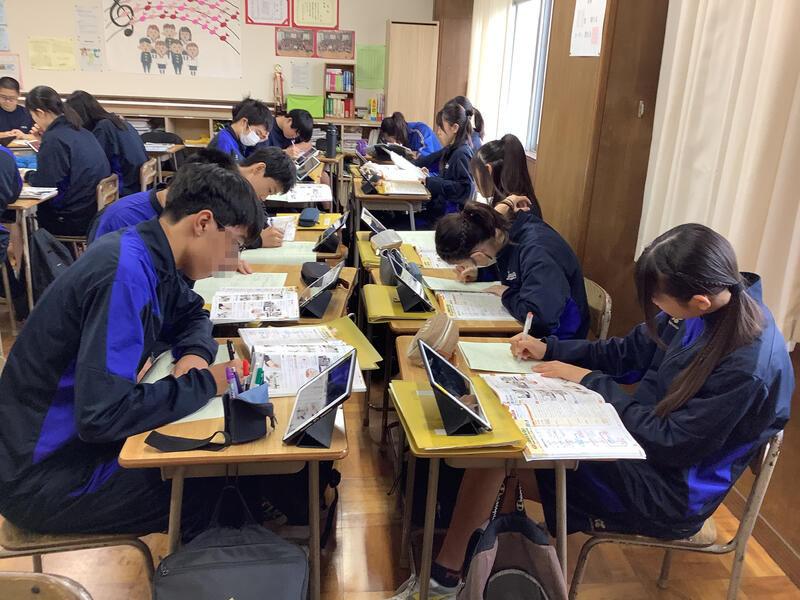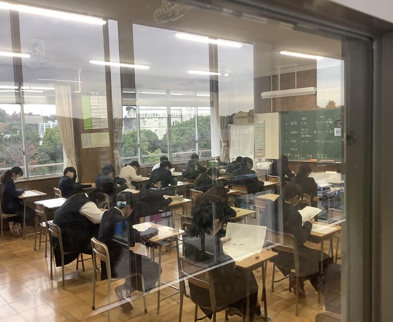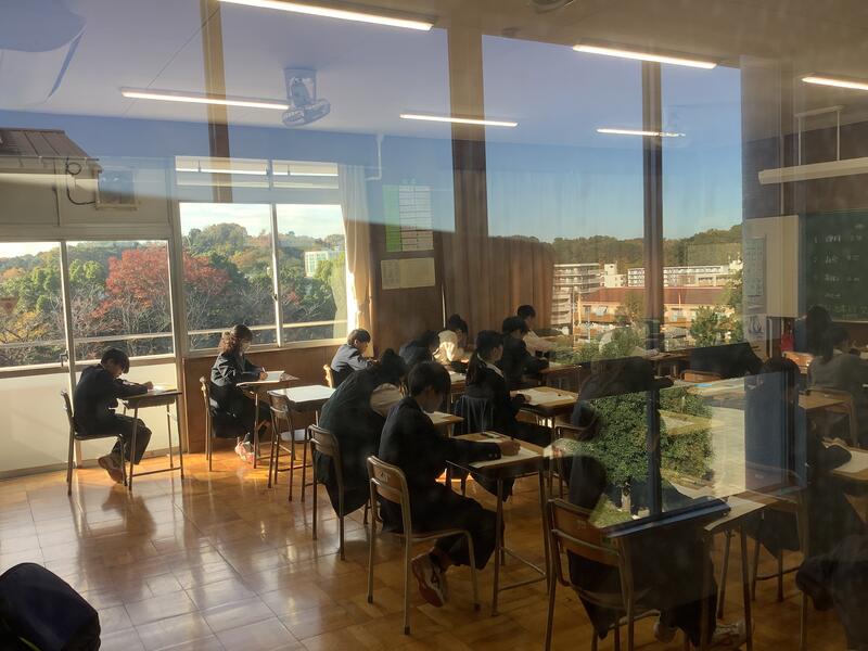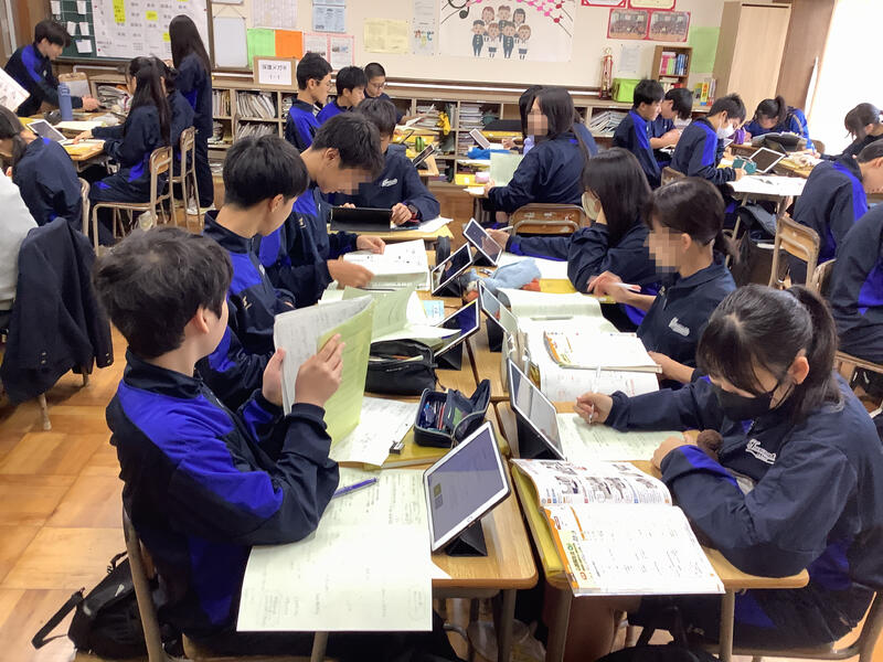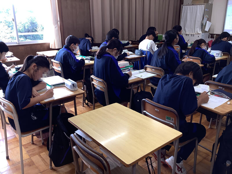 授業の様子です。答案が返却された教科もあります。解き直しや振り返りを行い、復習することが大切です。