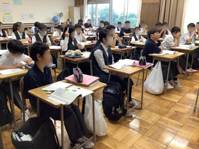 午後は、3年生を対象とした修学旅行説明会と第1回の進路説明会を実施しました。多くの保護者の方にお越しいただき、ありがとうございました。学校と家庭間の様々なやり取りが今後必要となってまいりますが、引き続き、御理解と御協力をお願いいたします。