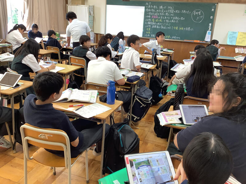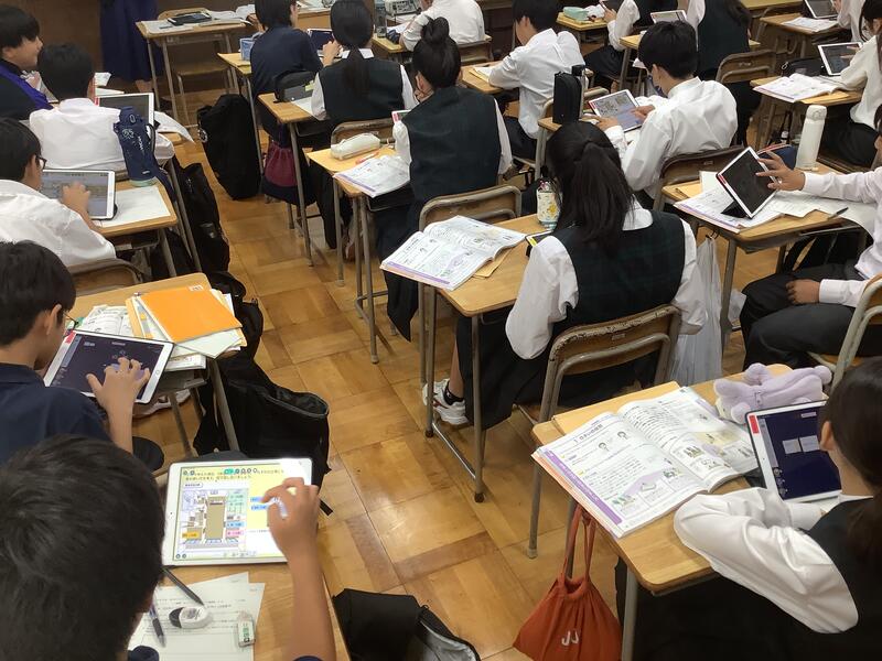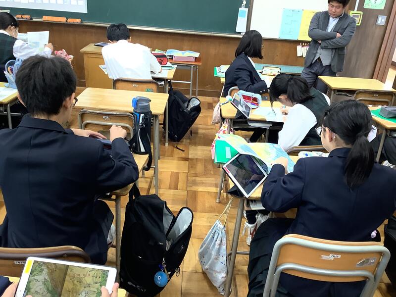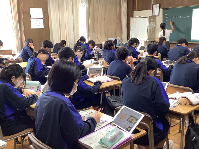1年生の社会では、ここまで学習してきたことの復習を行なっていました。個人やグループなど、一人一人自分の方法でまとめたり質問し合ったりしていました。