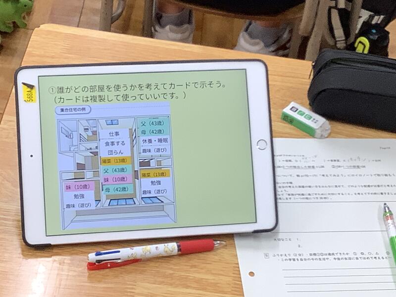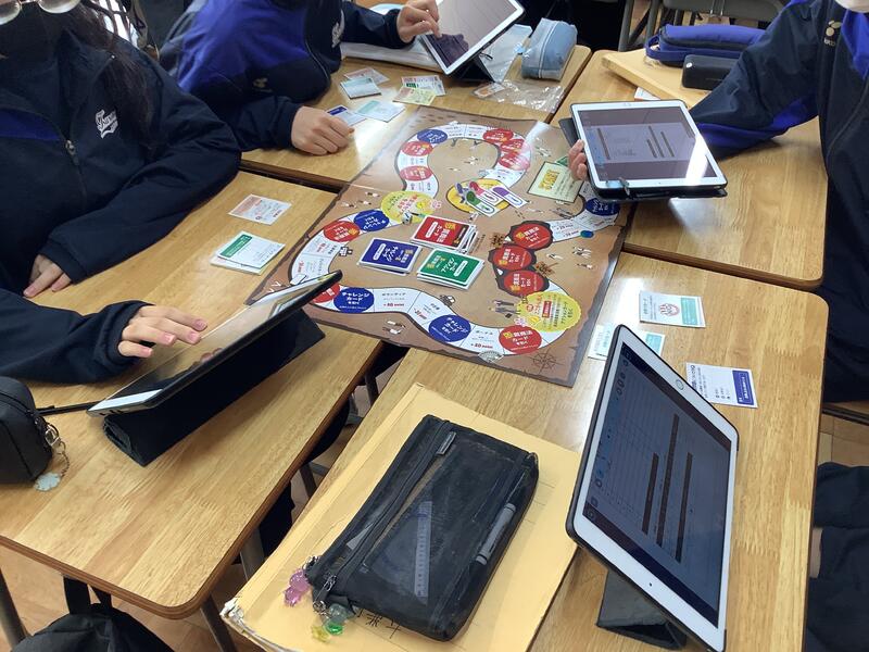 ・家庭科です。この前はサイコロゲームを使って学習していましたが、今日は、契約クイズを使って学習しています。