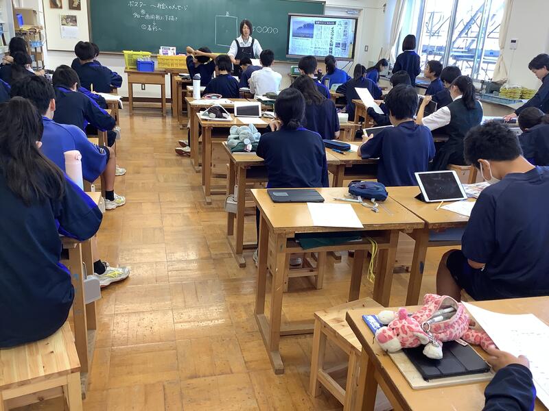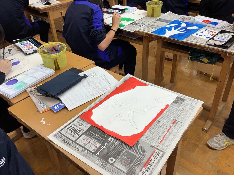・2年生の美術です。ポスター制作に取り組んでいます。そろそろ仕上げになります。