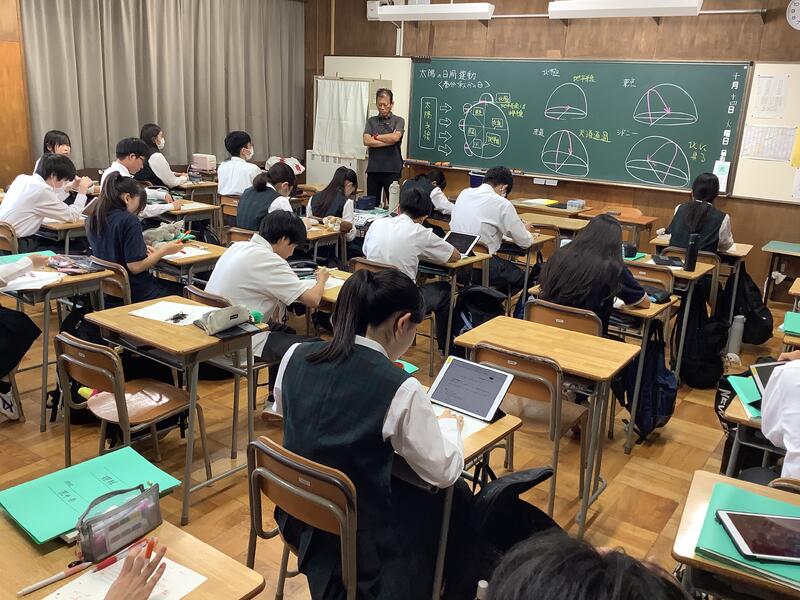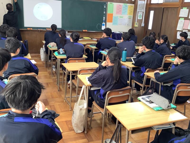 3年生の理科。日食、月食の単元のプリントをやっています。