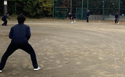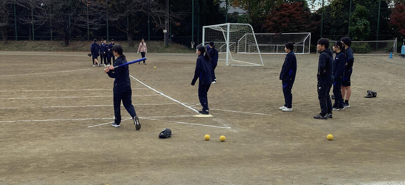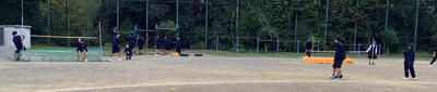 ・3年生の体育でソフトボールを行なっています。今日はゲーム形式で行っています。