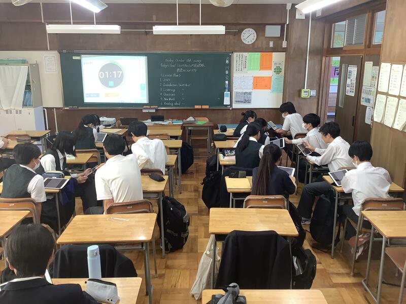放課後は、TTGG(Tama Tsurumaki Global Gateway)の第1回を行いました。今日は、シンガポール、スペインの先生と直接対面で、また、オンラインでトルコの先生と英語を使ってお話しする機会をもちました。