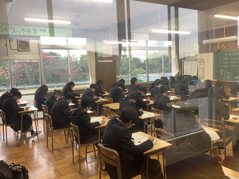 今日は定期考査二日目になります。朝降っていた雨は現在上がっています。