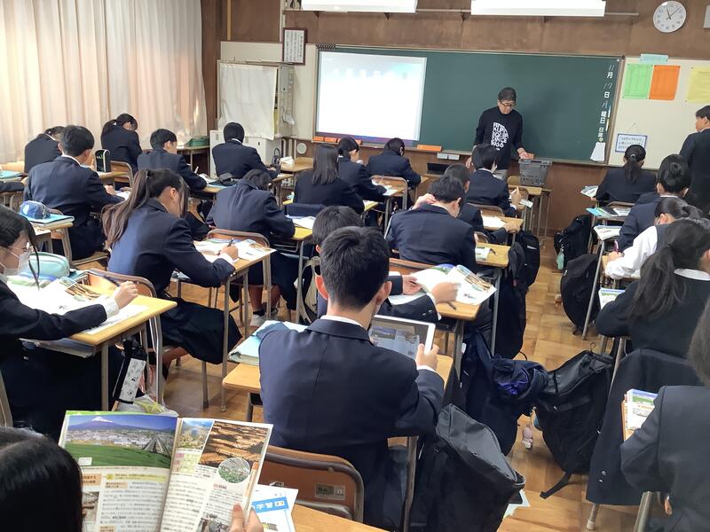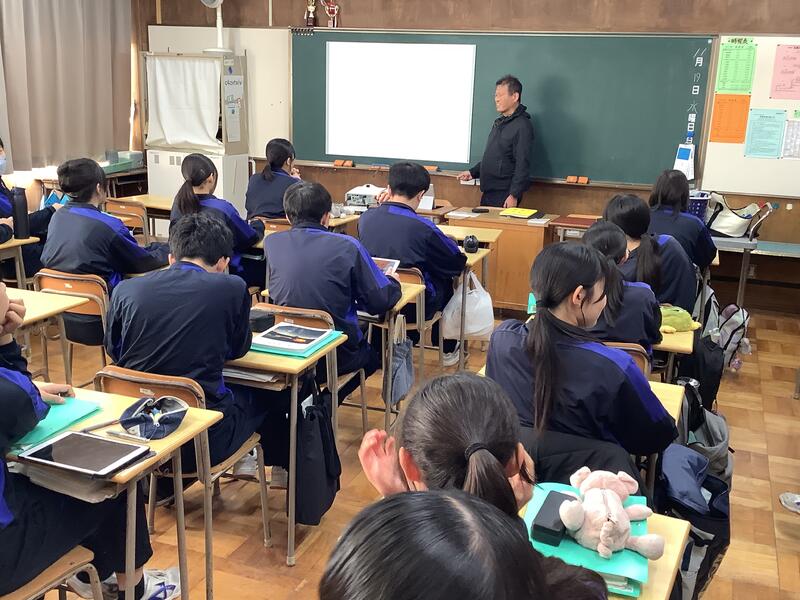 2年生は、職場体験に向けてのガイダンスを実施しました。職業選択に関する動画を視聴していました。