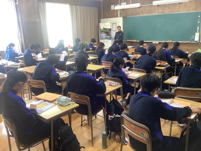 明日は全学年を対象に領域別確認テストを実施します。午後は修学旅行保護者説明会と進路説明会(いずれも3年生)を実施します。