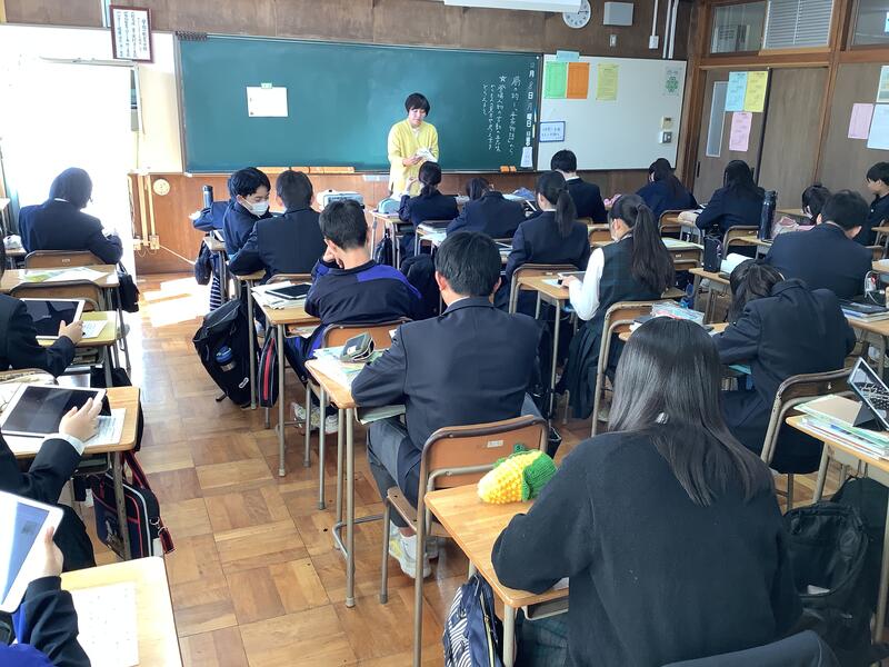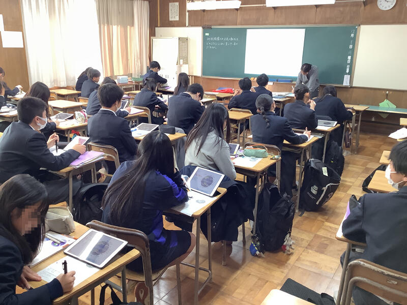 途中、日本語を使用する場面も入れながら、留学生の日本語のサポートをするなど、双方向で学習に取り組みました。