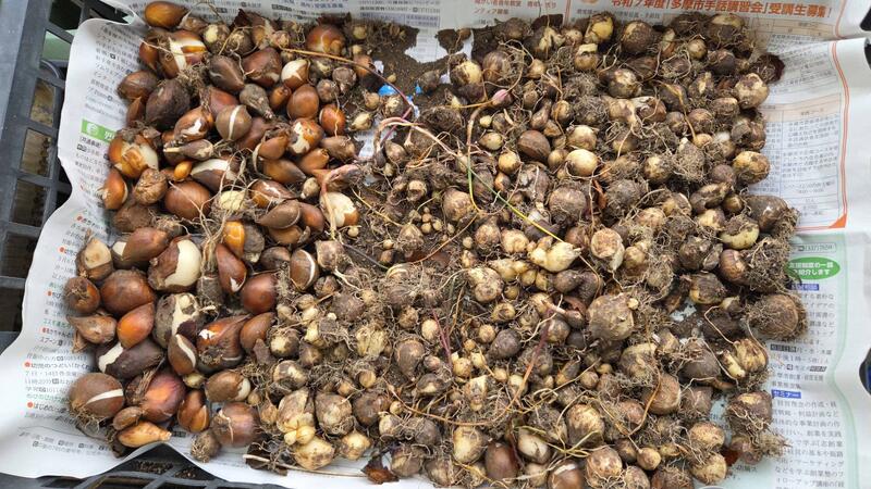 ◆玄関側の花壇では、球根を掘り起し、只今、乾燥中です。