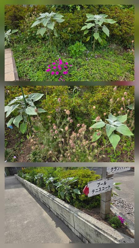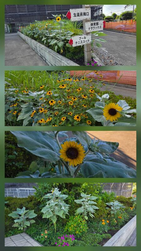 ◆その他の花壇では、案内板近くのひまわりが、5輪開花しました。