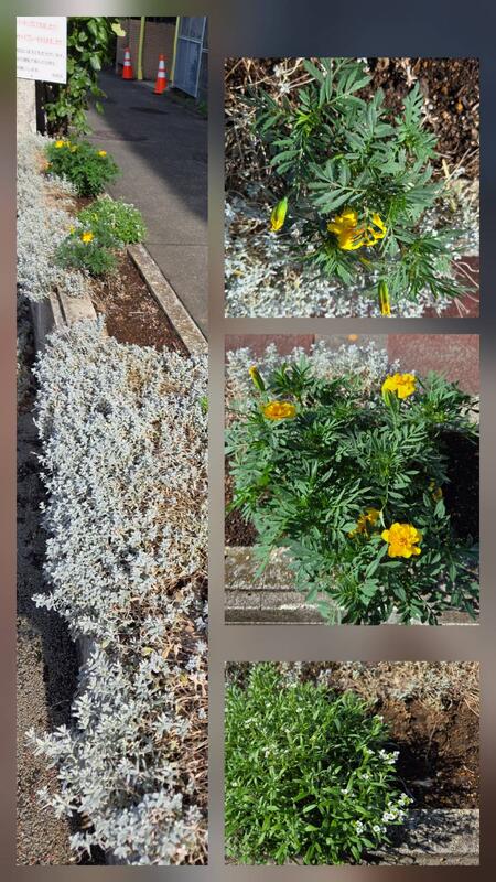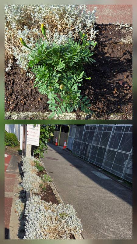 ◆玄関側の花壇では、花壇周りの洗浄、塗装の予定があり、工事の邪魔にならないようにマリーゴールドとセラスチウムは、少し小さくカットしてあります。
