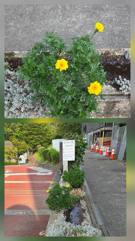 ◆玄関側の花壇では、修繕工事に備え、マリーゴールドを撤去しました。