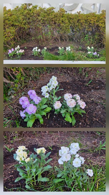 ◆その他の花壇では、ストックが仲間入りし、可愛く咲いています。
