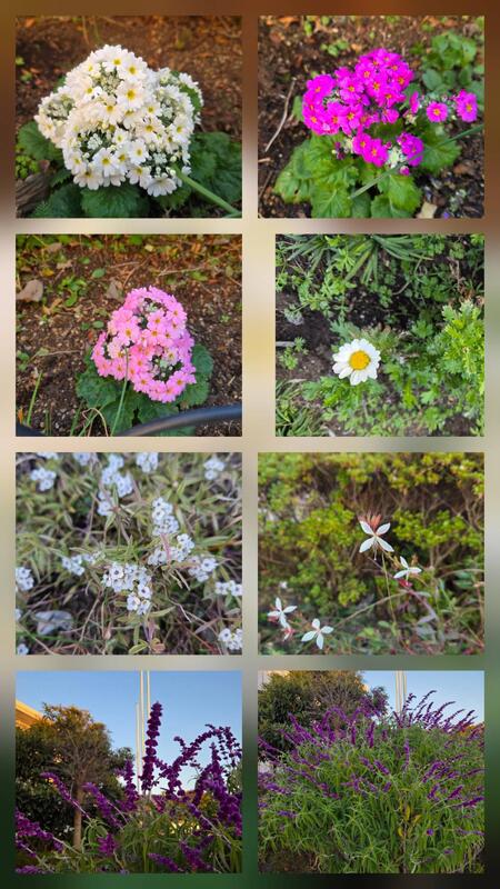 ◆その他の花壇では、ランタナ、スーパーサルビアロックンロール、ガウラ、プリムラマラコイデス、シュウメイギク、ノースポール、タマスダレ、ジニア、メランポジウム、アメジストセージ、ひまわり、トレニア、サルビアコクシネアが咲いています。